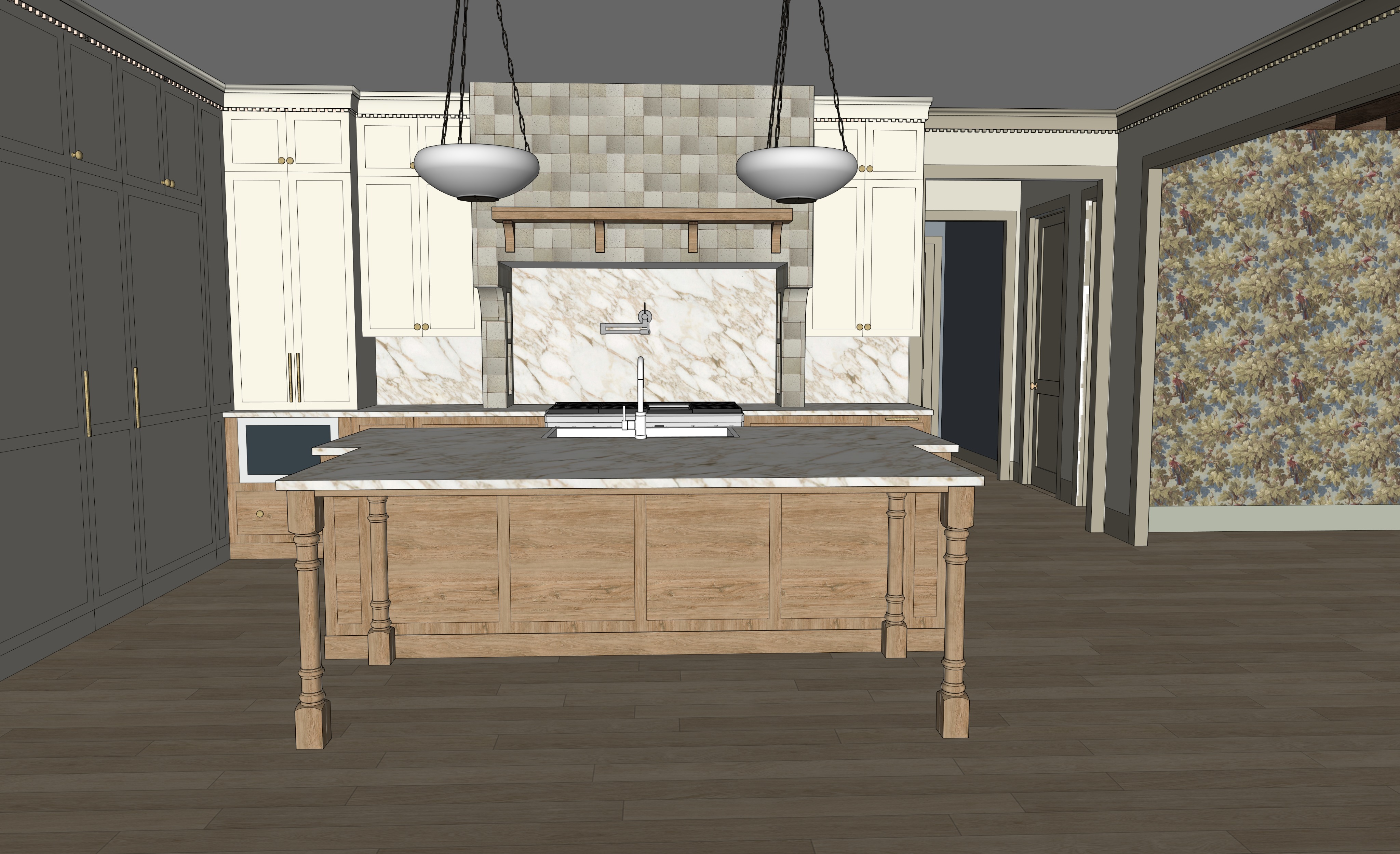 create a highly photorealistic interior rendering of a traditional mudroom using the provided reference image as a fixed architectural model the layout cabinetry bench paneling door placement flooring direction and camera perspective must remain consistent but correct the perspective to feel natural and realistic this rendering is for a finishes focused concept presentation no styling clutter the space should feel tailored warm and grounded with strong material contrast and depth camera correction critical adjust camera from top down to eye level or slightly elevated 5 6 ft maintain same general angle but remove distortion use a 28 35mm lens keep vertical lines straight no tilt distortion this is the biggest issue in the current image architecture to preserve full built in cabinetry wall with upper cane panels continuous bench with integrated drawers door placement and trim flooring layout and direction adjacent room visibility do not redesign or reposition elements materials and realism cabinetry major fix deep rich brown espresso leaning warm not black add visible wood grain and tonal variation matte finish cane panels natural woven cane texture warm honey tone slight irregularity and depth not flat or printed cabinets should feel like furniture not a solid mass bench same wood tone as cabinetry slight wear variation on surface matte finish subtle highlight along front edge flooring currently too flat light natural wood tone add variation plank to plank visible grain and slight tonal shifts matte finish avoid uniform beige needs movement walls trim soft warm neutral not gray matte finish subtle shadowing at panel edges door slightly deeper tone than walls satin matte finish add edge definition and shadowing lighting depth realism fix natural light soft daylight coming from adjacent space left side gentle directional falloff ambient light warm soft fill do not evenly light all surfaces shadow behavior add soft shadows under bench cabinetry toe kicks slight deepening in corners this will ground the cabinetry and remove flatness lighting temperature 3200 3700k warm neutral contrast depth important increase contrast between dark cabinetry light flooring neutral walls avoid everything reading mid tone styling minimal optional one folded textile or basket on bench otherwise keep clean rendering style professional architectural interior photography warm slightly moody strong material realism matte finishes no glossy cg look no flat lighting geometry guardrail treat the model as fixed do not move cabinetry do not change layout do not alter proportions only improve materials lighting camera realism