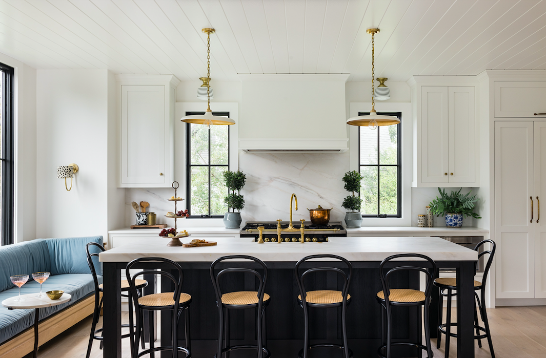 please add linen flat roman shades to the windows and paint the cabinets a soft grey color