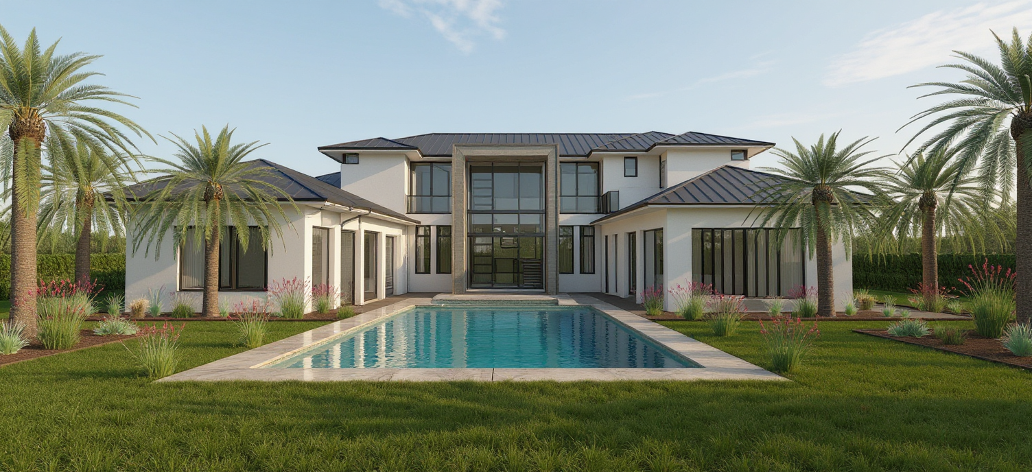 contemporary exterior shot convert the image to a top view master plan with irregular shapes being buildings and lines in between are car roads surrounded by pedestrian walkways with light landscape add exterior lighting and make it in neutral colors architecture