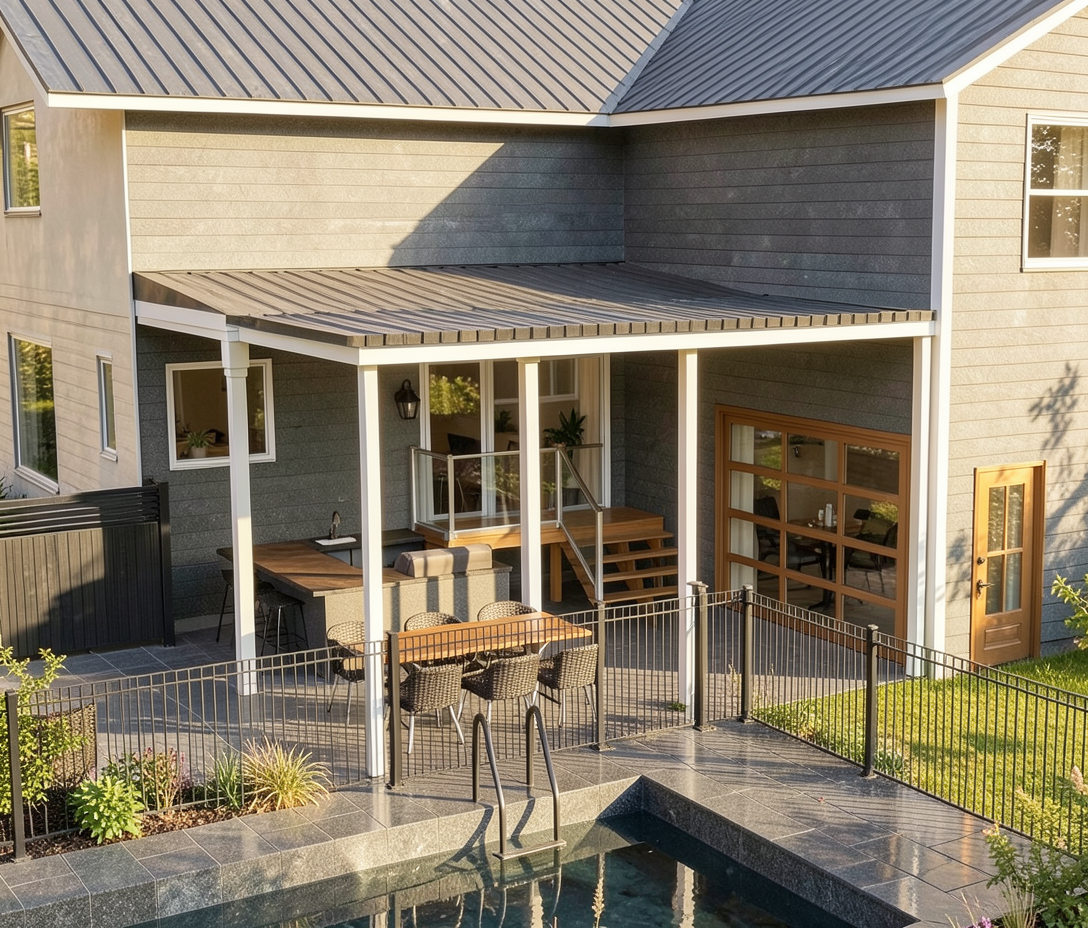 day comptoir granit noir revetement maison blanc toiture galvanis