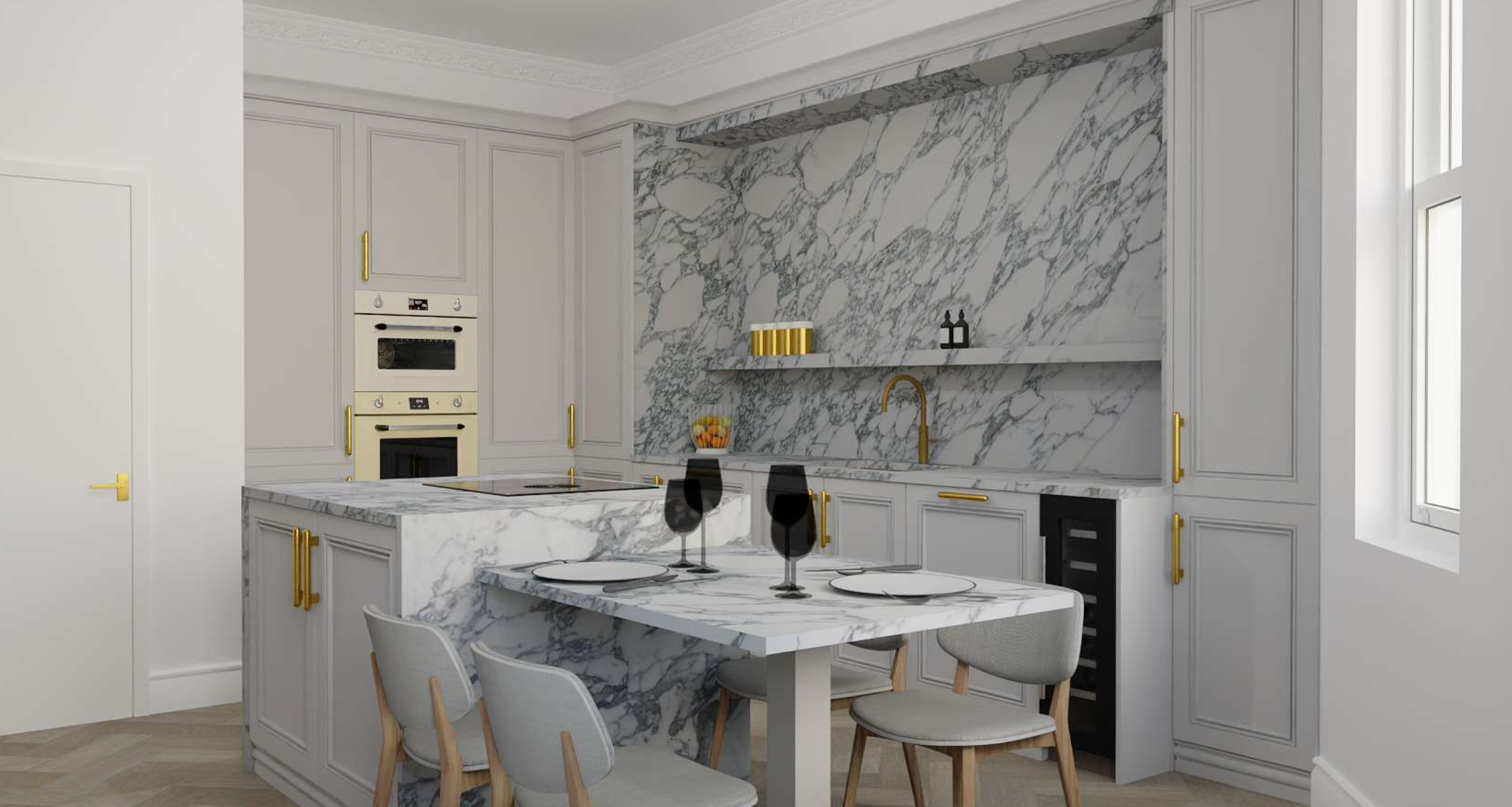 kitchen cupboards are white