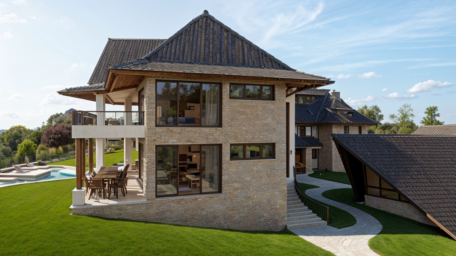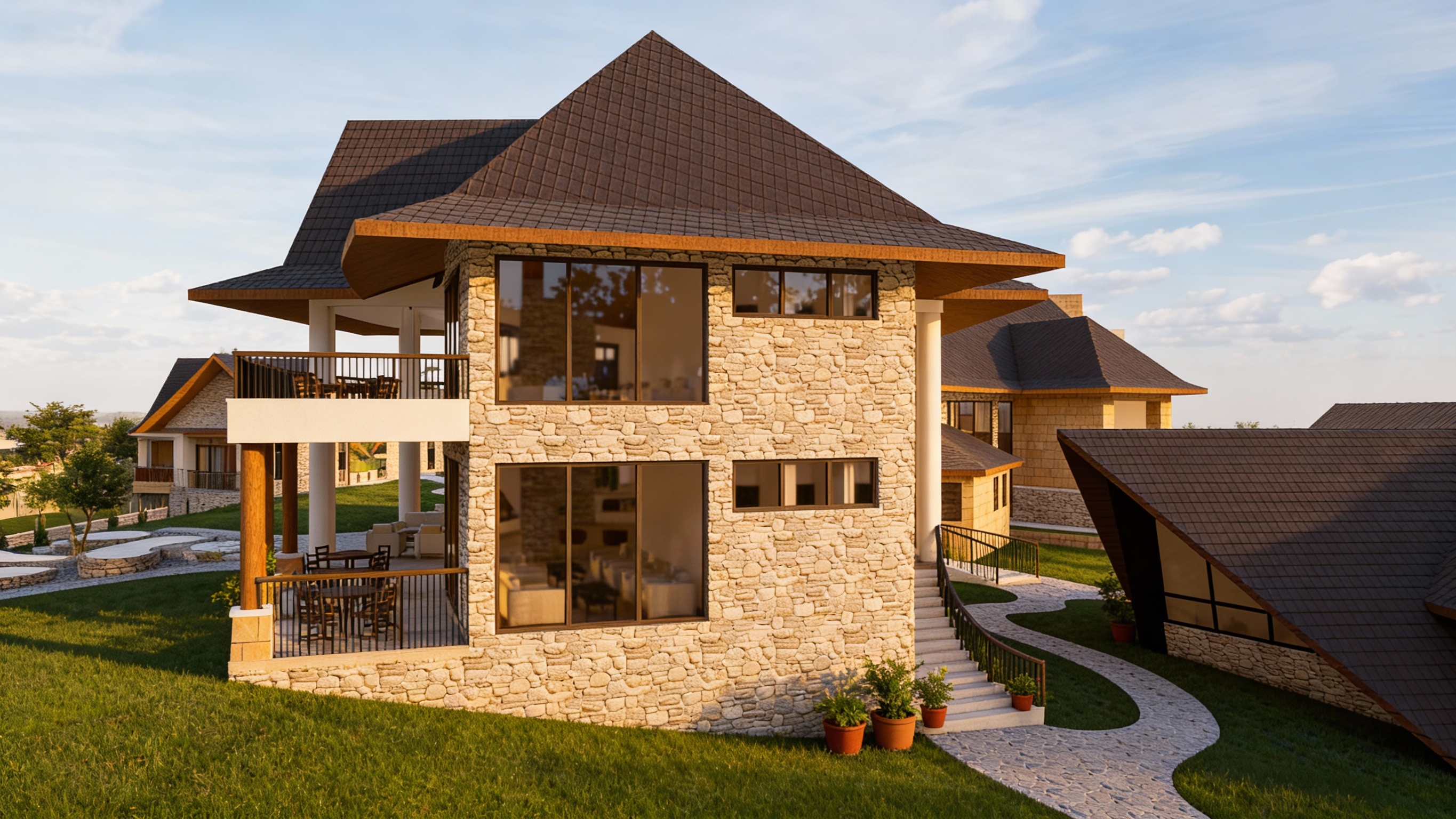 improve the quality of the materials shown add a family and furniture some more landscaping that is texas natives flowers golden retriver dog