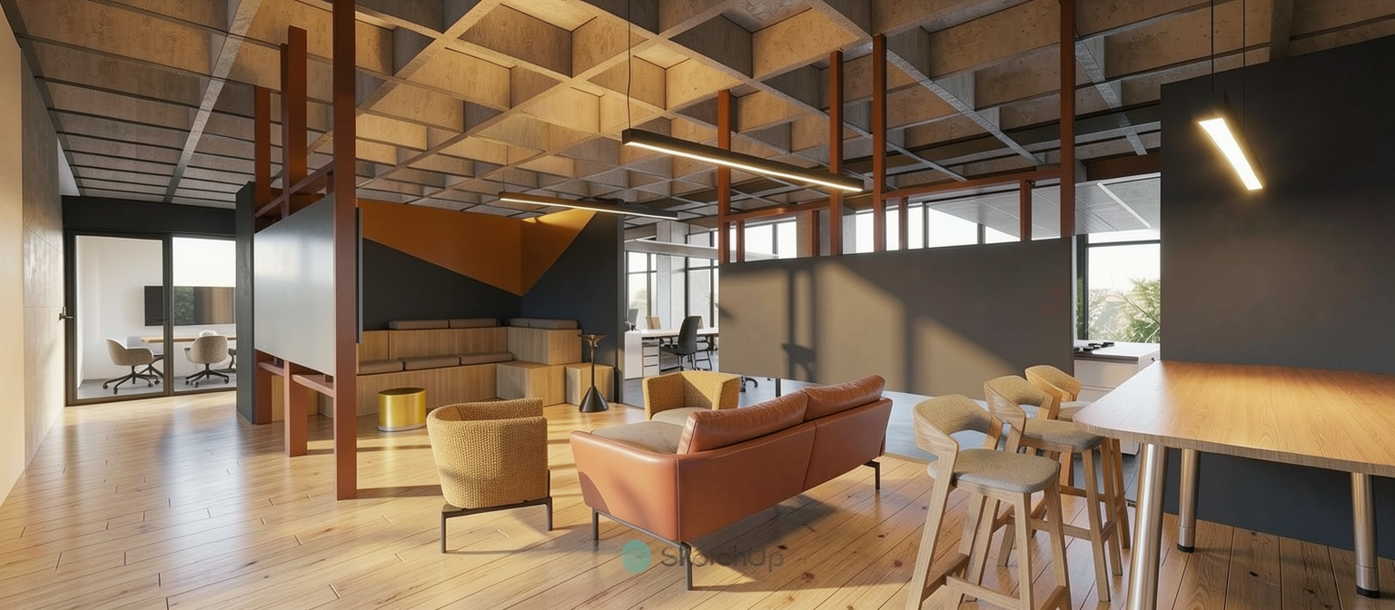 the countertop on the cabinets against the walls is a smooth darker concrete