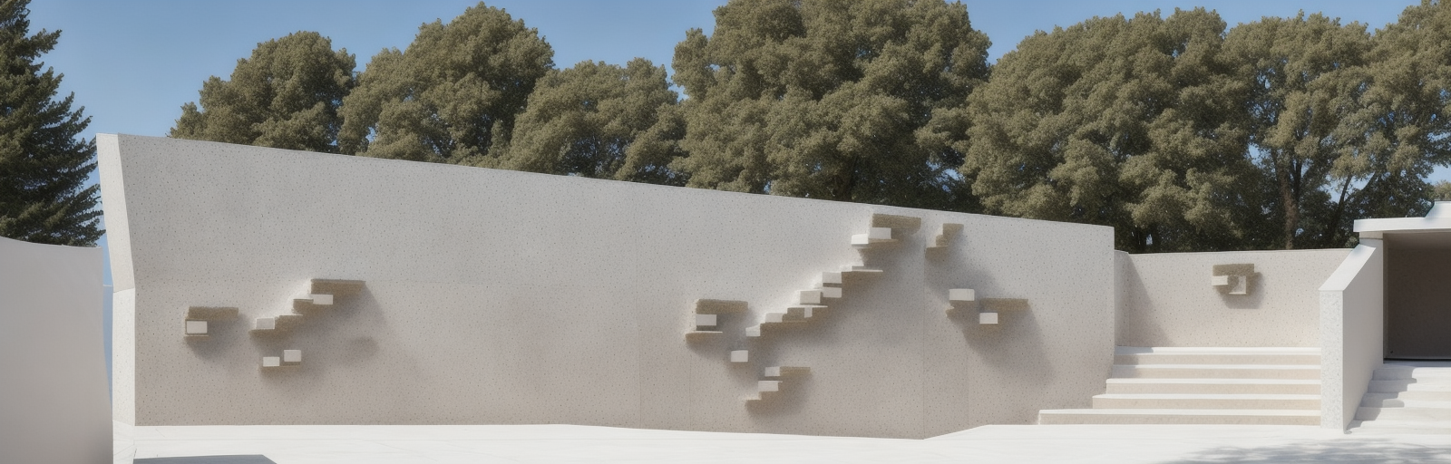 the walls to the left and to the right are made of stone remove the stairs and put a ramp remove the back wall and put trees on the background architecture