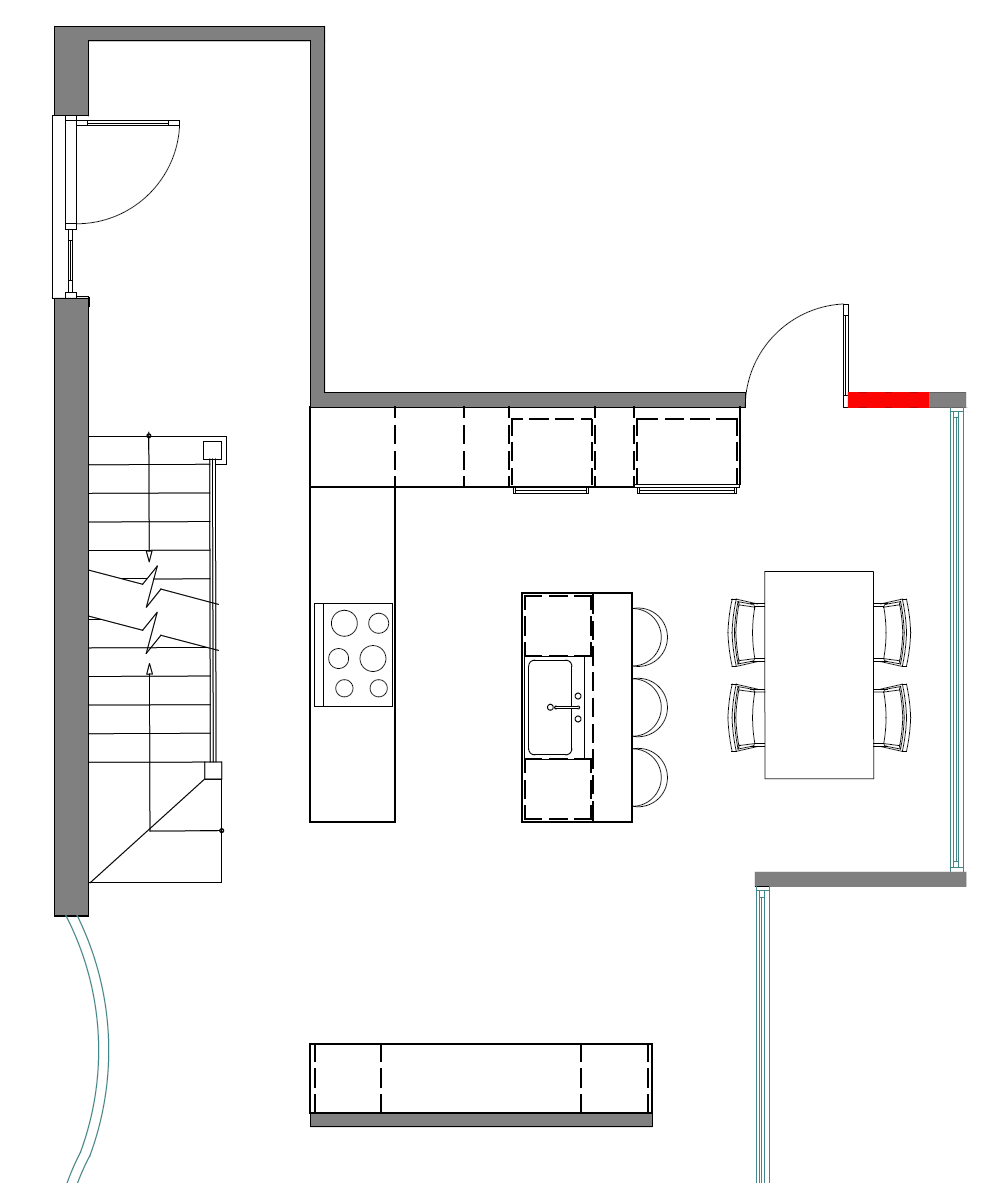 kitchen floorplan island white stove counter white the rest of the cabinetry walnut