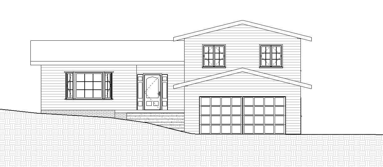 craftsman house with brown walls green windows red door landscape front lawn paved driveway in front of garage door