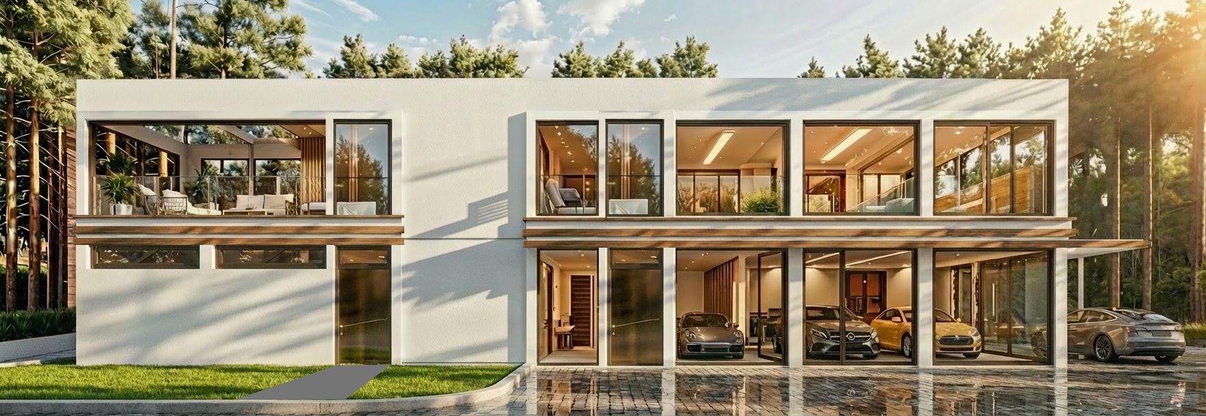 wooden facade stripes to white aluminium do not change geometry