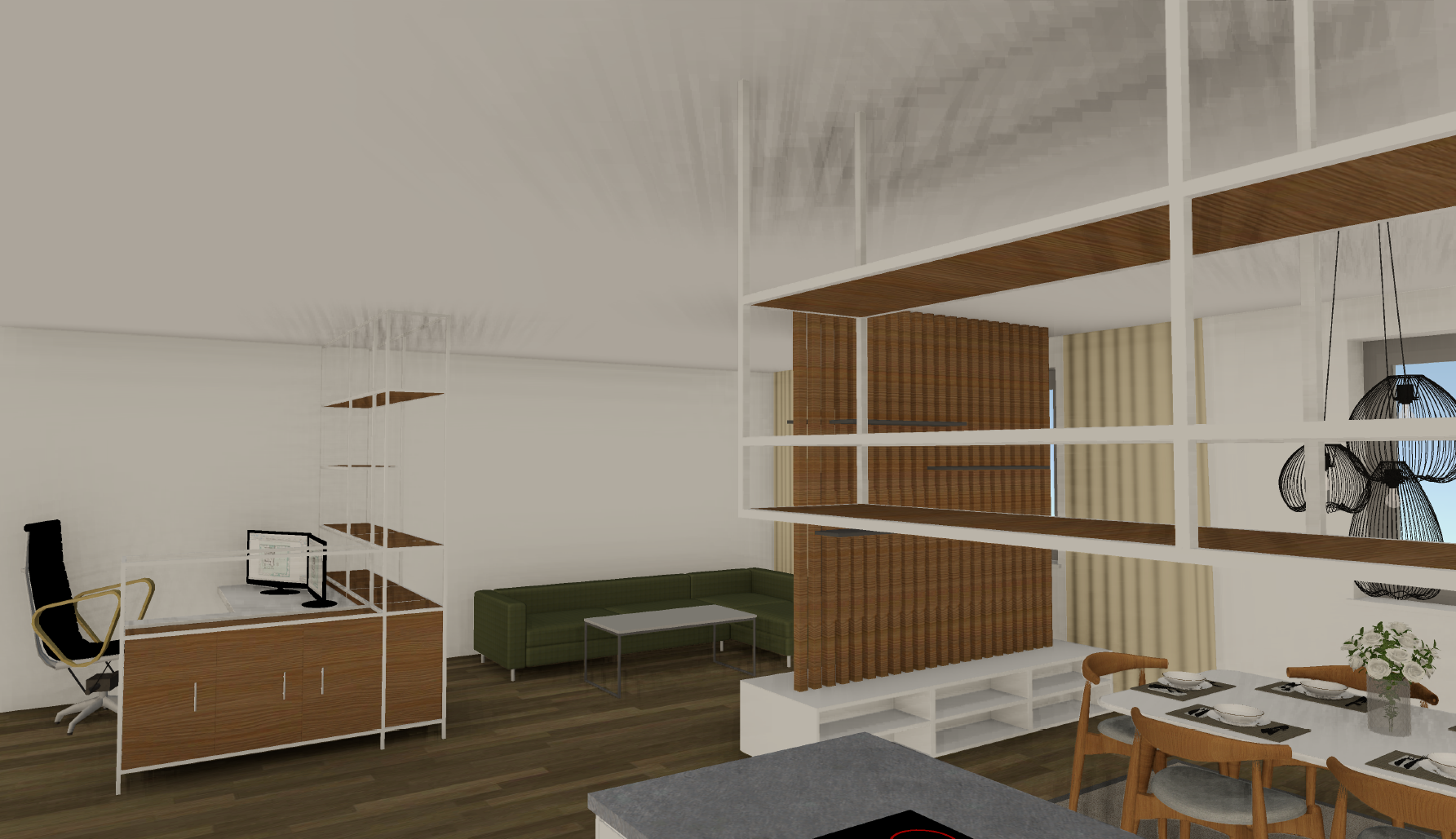 transformiere das bild ein photorealistisches rendering farben und materialien sollen gleich bleiben und nicht gl nzen die m blierung und die proportionen sollen nicht ver ndert werden integriere eine gem tliche stimmung