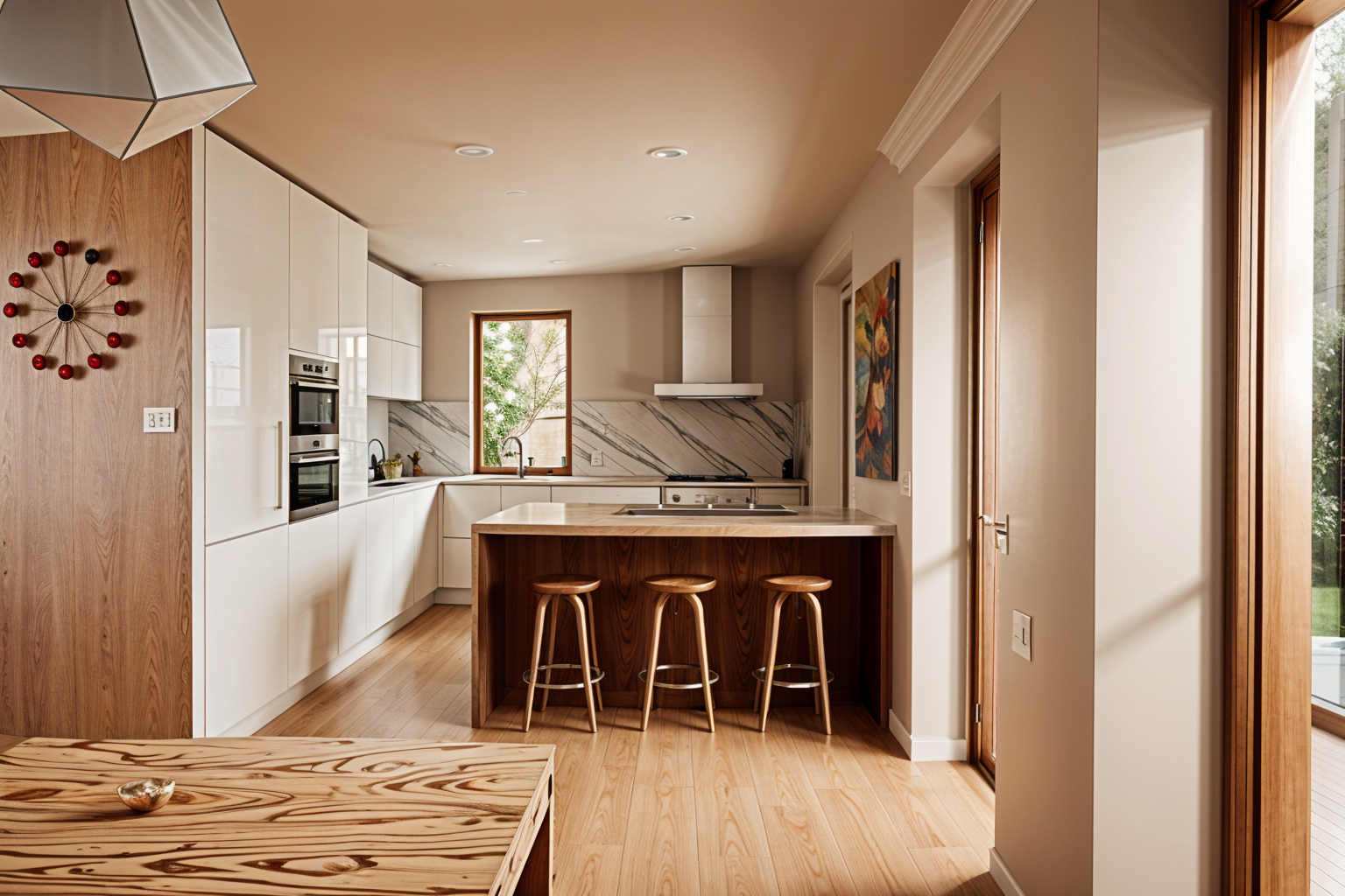 exterior shot render a modern residential street scene with a minimalist architectural style buildings are sleek and white with sharp lines and large windows add lush green foliage and vibrant purple and blue plants along the pathways the cars are glossy black with metallic highlights parked on a smooth dark gray asphalt soft ambient lighting creates a serene atmosphere with a sky transitioning from subtle shades of lilac to dusky blue capturing a tranquil late afternoon vibe