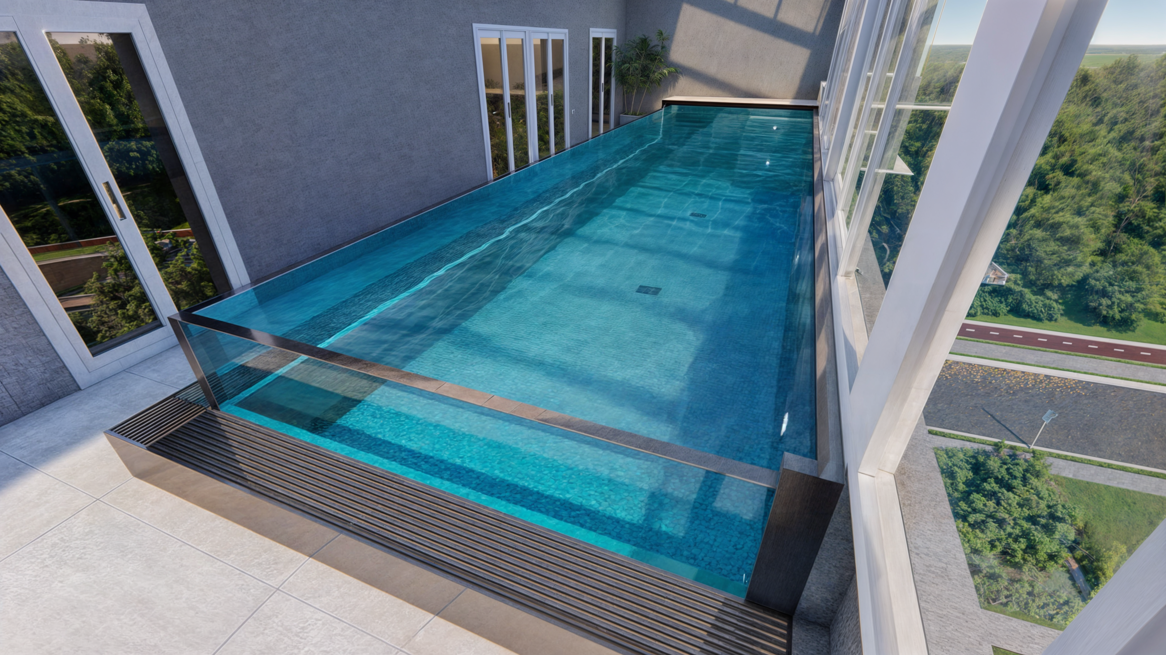 contemporary exterior shot a pool with glass walls architecture