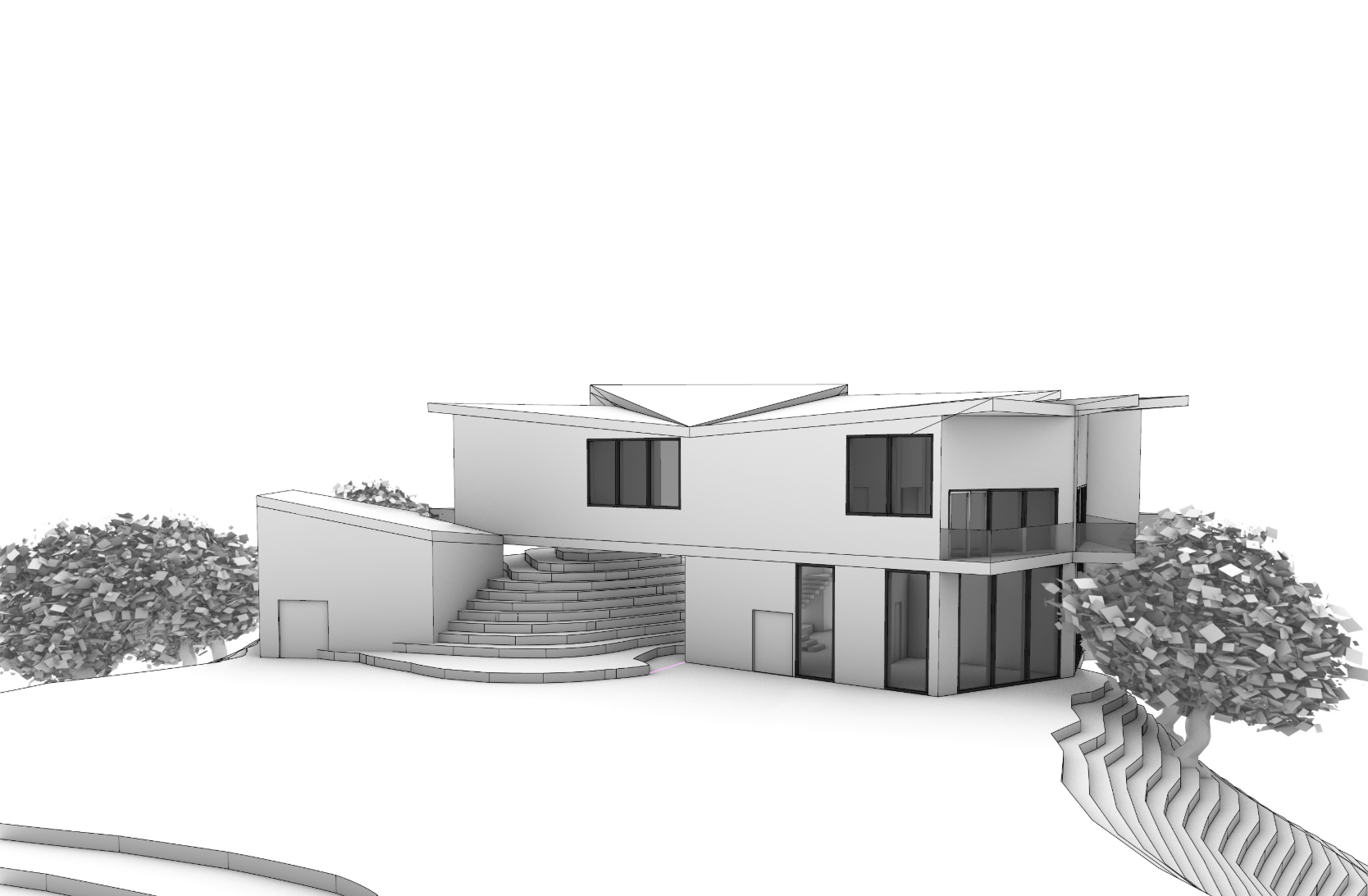 contemporary mountain research station architectural visualization sleek black glass and warm natural wood fa ade with exposed steel framing perched in alpine landscape surrounded by evergreens and rugged rock formations midday sunlight crisp blue sky high contrast reflections on glass warm tones from wood detailed environmental integration realistic materials and lighting cinematic composition archsynth style ultra detailed architectural rendering 8k photorealistic