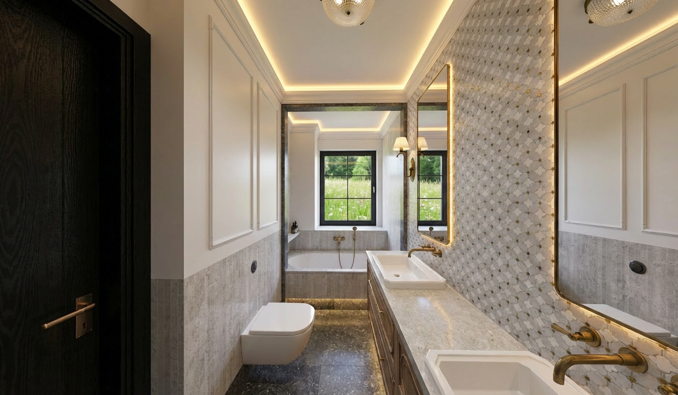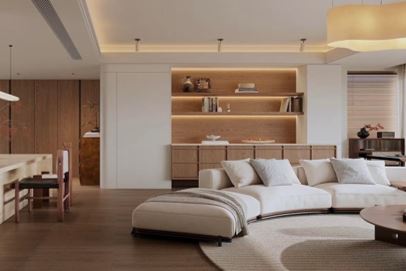 exterior shot give me an image the above is the current cabinets on site moodboard attached is the look we are going for something elegant and classy with the bar behind the dining to stand out and incorporate some curves into the design