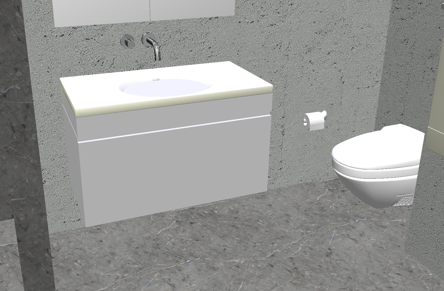 genau dieses rendering berarbeiten fotorealistisches innenraum foto exakt gleiche perspektive und kameraposition wie das hochgeladene referenzbild 100 identische raumgeometrie perspective correction straightened verticals no keystone upright perspective lens correction vertical alignment dewarp strong converging verticals uncorrected perspective keep natural keystone distortion dramatic upward view with falling lines exakt gleiche m belanordnung weiches nat rliches tageslicht ganzer raum zus tzlich k nstlich ausleuchten sanfte realistische schatten realistische materialien hochwertige oberfl chenreflexionen lavabo inklusive unterbau aus marmor collemandina grigio in braungrau dunkel lavabo innen ebenfalls collemandina lavabo ersetzen mit rechteckigem lavabo im unterbau im obersten drittel eine griffmulde ber die ganze breite unterbaum bel mit unterbaubeleuchtung hinter dem lavabo eine vola wandarmatur in edelstahl geb rstet vollkommen rahmenloser und bis auf f nf zentimeter versenkter und hinterleuchteter spiegelschrank mit spiegelung wandfl gel links ist in collemandina alle anderen sichtbaren w nde sind sichtbeton der boden ist plattenmaterial collemandina die toilette ist in der nische hinten auf der rechten seite moderne toilette laufen riva wandh ngend in farbe weiss matt toilettenpapierhalter in edelstahl mit papier an der wand links von der toilette an der grossen wand links und rechts vom lavabo handtuchstangen und handt cher in weiss schwarze steckdose rechts vom lavabo auf gleicher h he wie die armaturen sehr moderner minimalistischer look nat rliche farbwiedergabe golden hour feeling hell ausleuchten das bild muss wie eine professionelle fotografie aussehen es soll ein echtes und reales foto sein canon eos r5 35 mm festbrennweite f 2 8 hyperrealistisch dslr qualit t raw aufnahme 8k aufl sung extrem scharf perfekte tiefensch rfe professionelle architekturfotografie