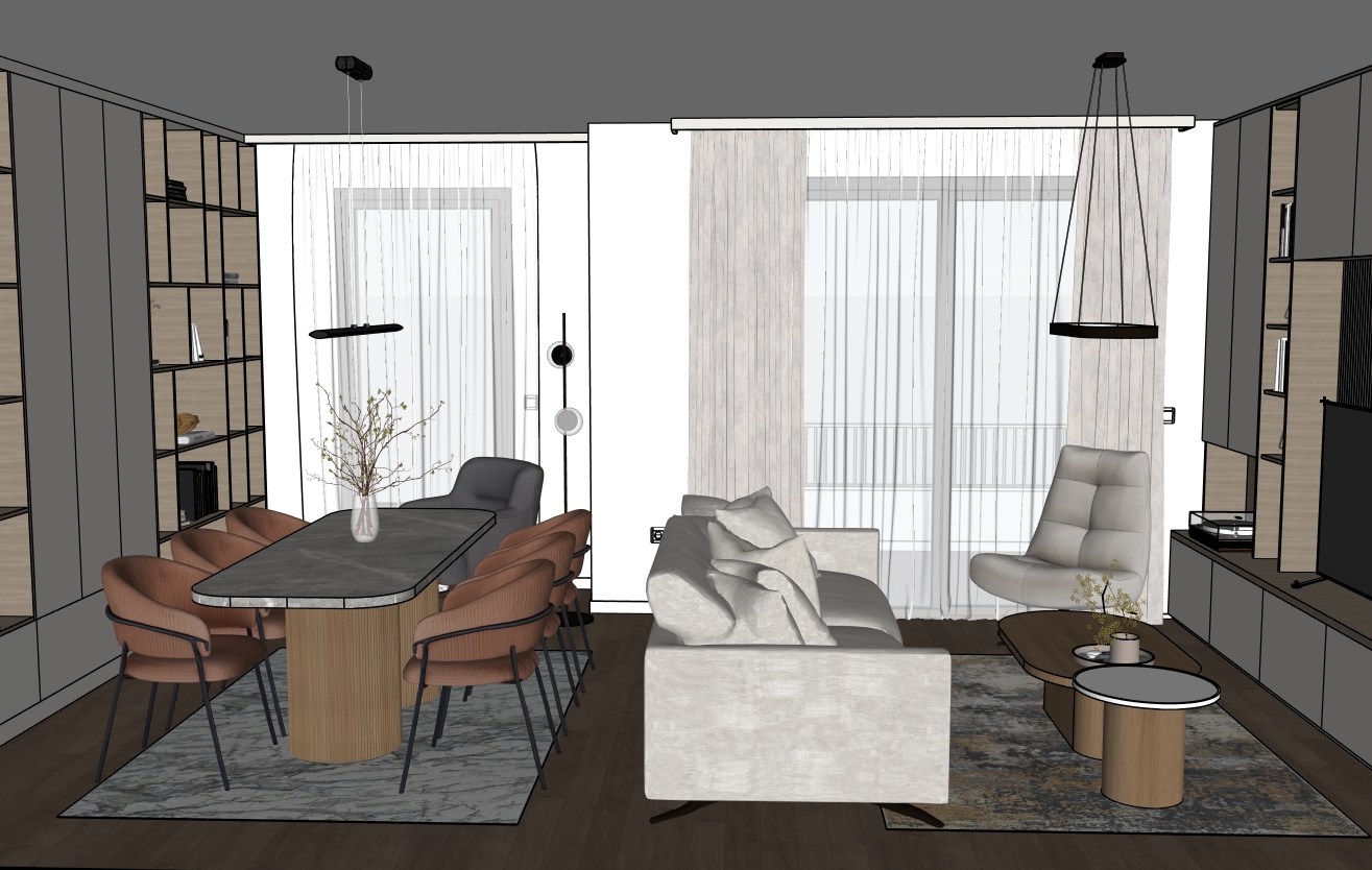 keep colors textures shapes don t change anything make photo realistic with natural day light fronts on furniture on left and right side are light beige just like in uploaded photo change only that