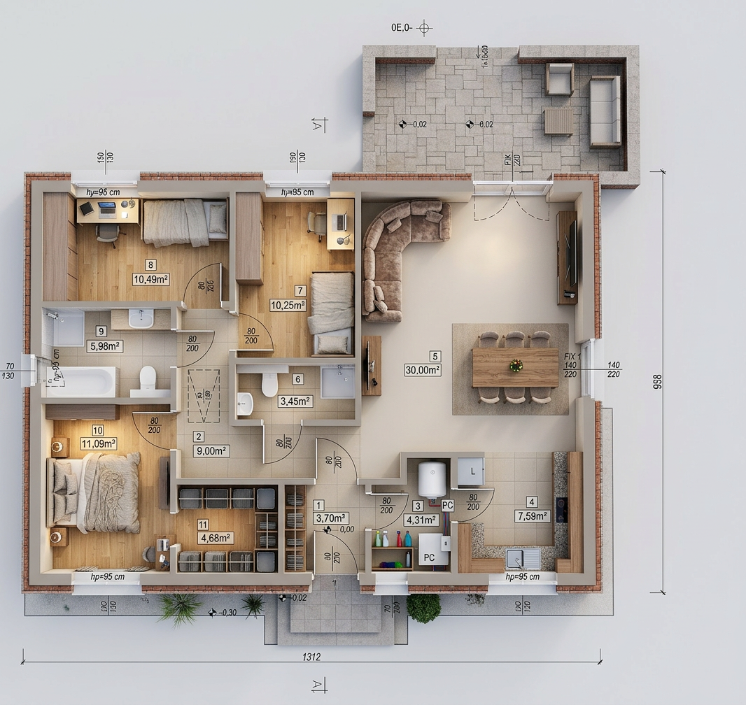 create a serene and modern living room with large floor to ceiling windows allowing warm natural sunlight to pour through the sunlight casts gentle shadows on light beige marble floors design minimalist white cabinets along the wall reflecting the light subtly use neutral colored curtains in soft beige slightly parted to reveal a vibrant cityscape view with lush green trees and a clear blue sky in the background include a contemporary ceiling fan with a sleek black finish adding a touch of elegance the atmosphere should be calm airy and inviting exuding a sense of tranquility and spaciousness