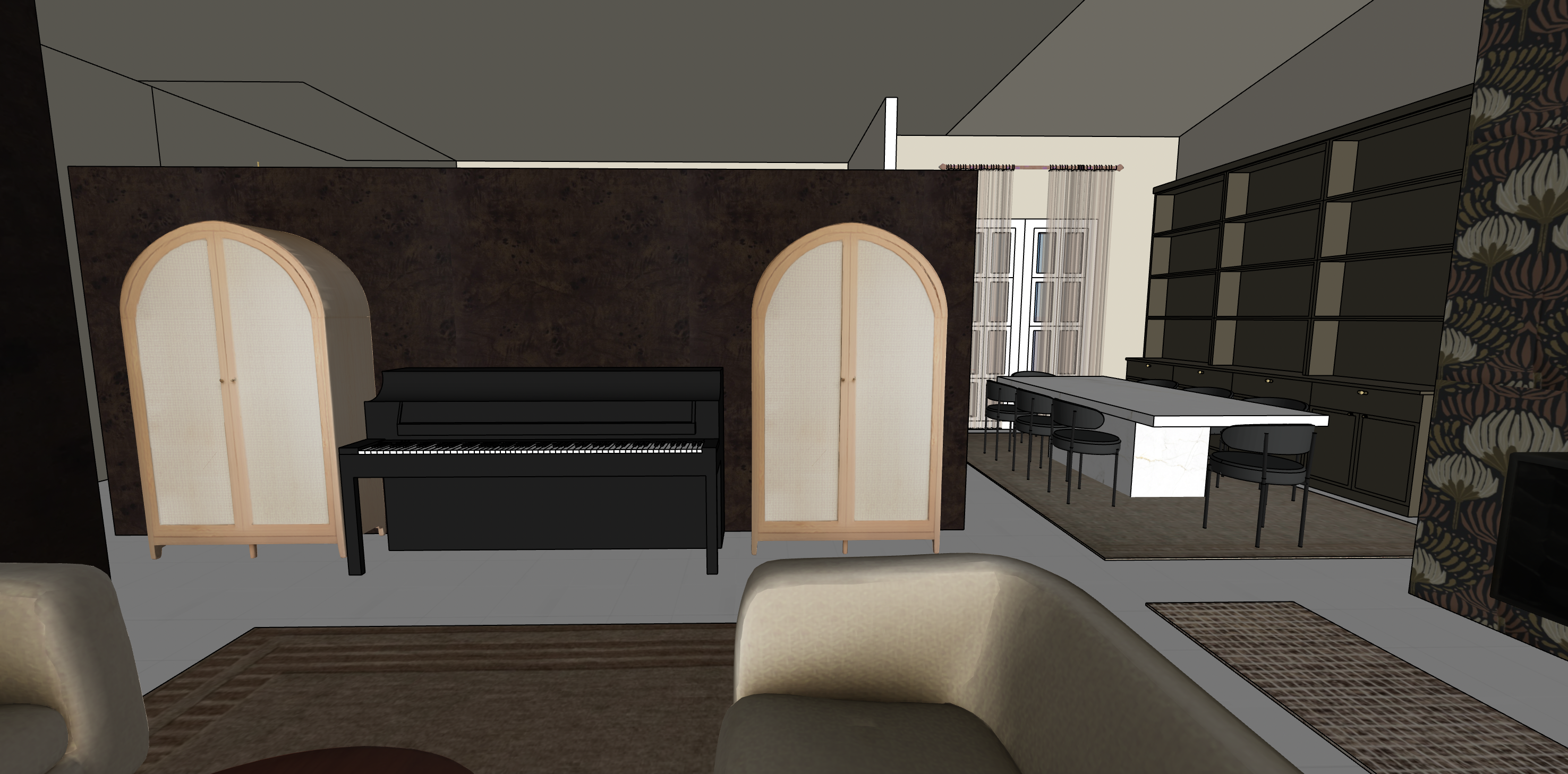 white matte tile floors under the rugs