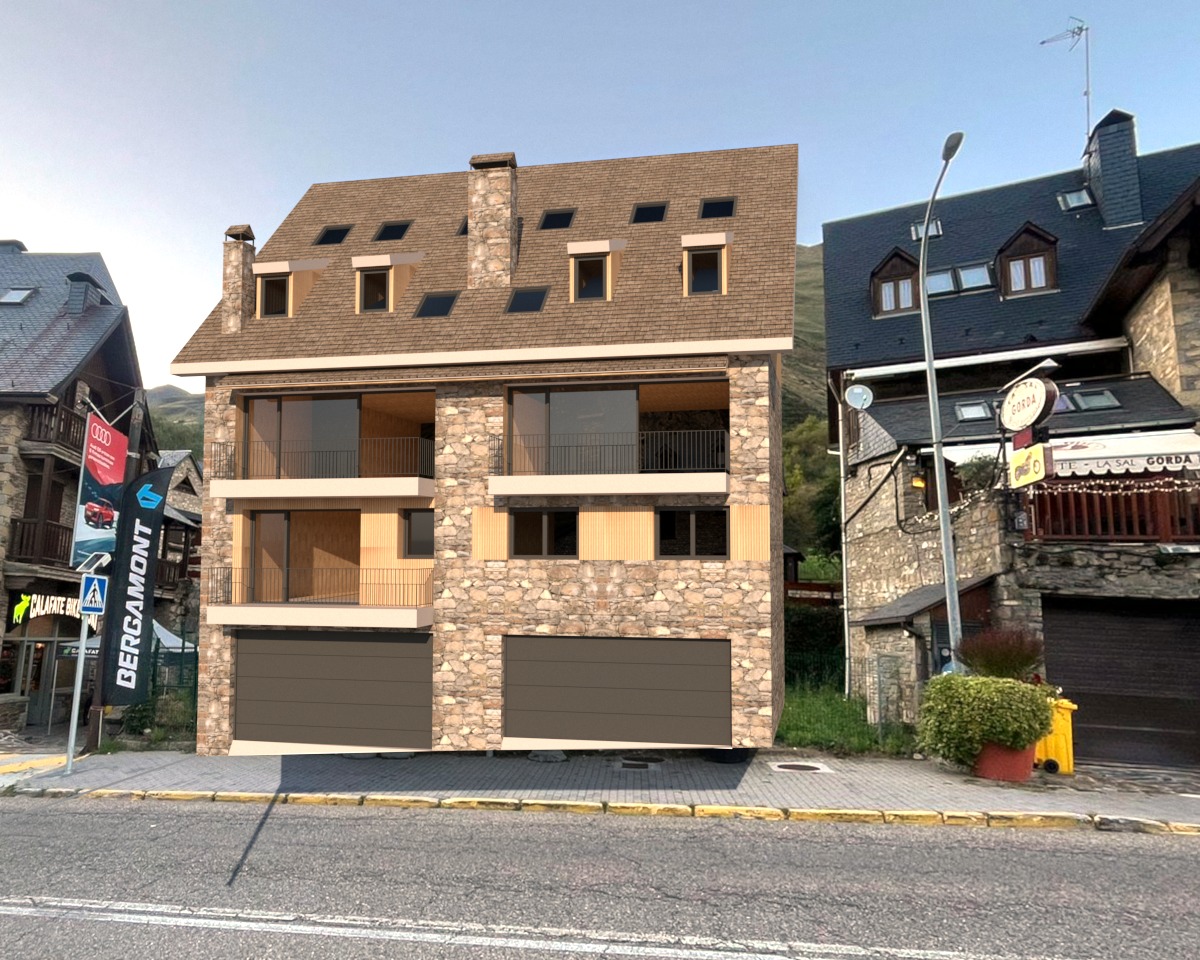 modernist exterior shot could you integrate the middle house and give it a realistic finish like the houses on each side please architecture