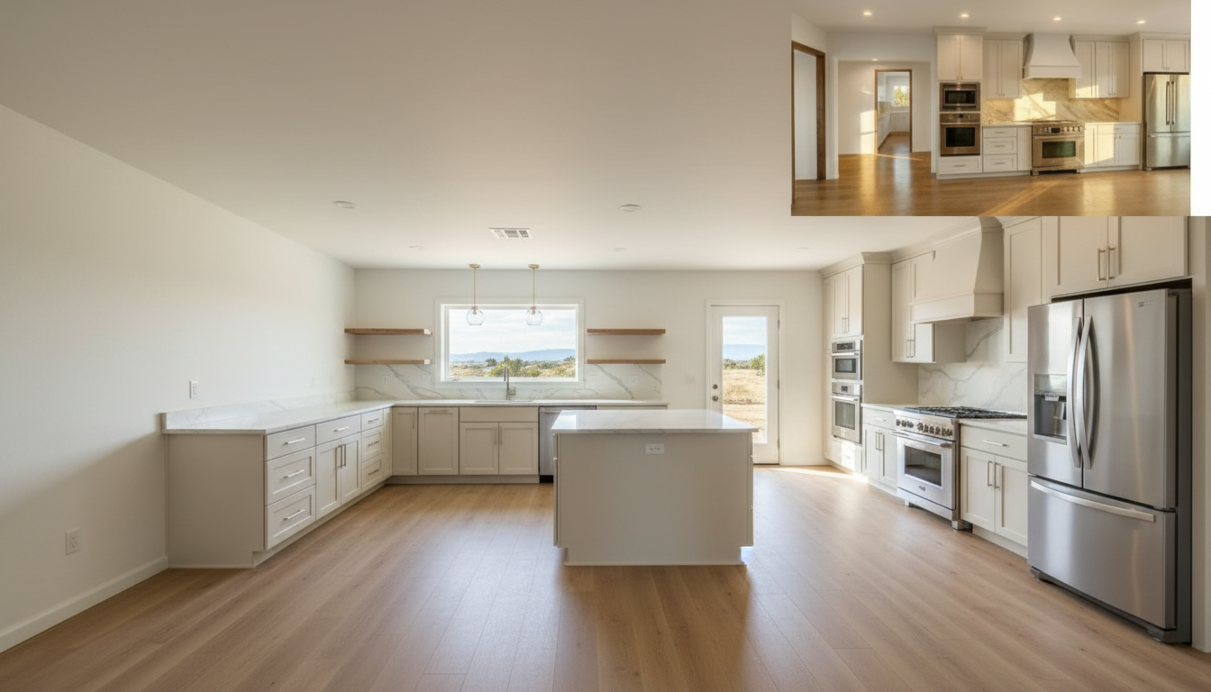 render this into a 3d rendering keeping all of the geometry colors and textures add backlight to the frameless mirror keep the wood design detail around the frameless mirror there is a small window on the right side wall with the bottom of the window sill at 6 feet above the floor show a pocket door in the mirror