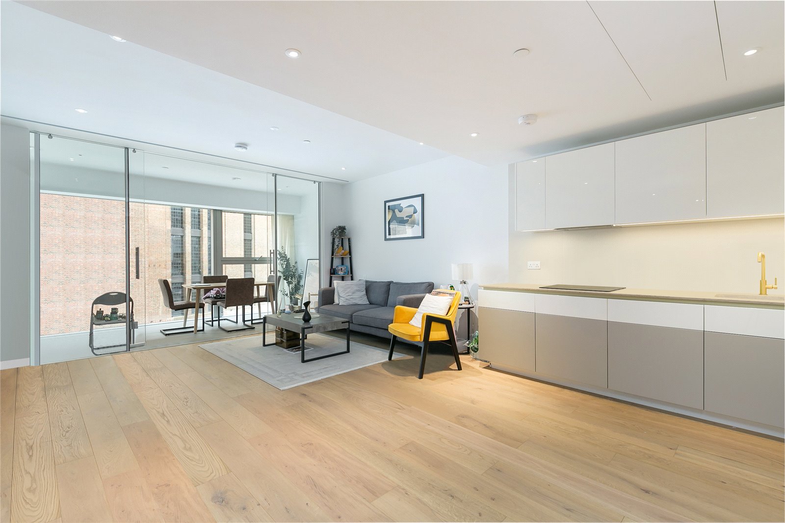 exterior shot add a 6 seat dining table with chairs should be same or similar style to the coffee table