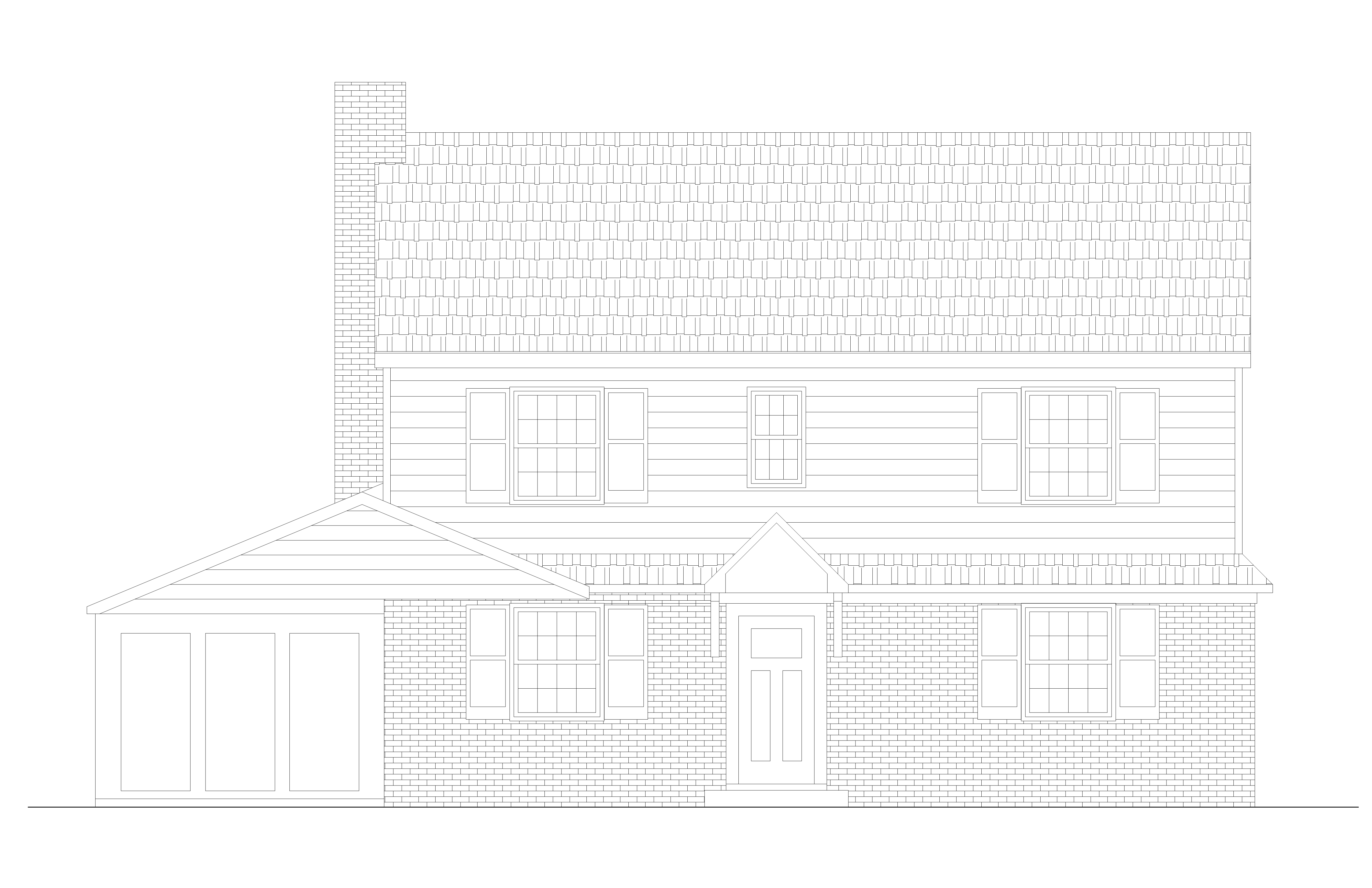 create a realistic cozy suburban house scene with a two story house featuring a light gray exterior with crisp white trim the front door is black adding an inviting touch all windows are framed with black shutters and a subtle grid pattern at the windows the roof is a gentle black shingle contrasting harmoniously with the rest of the facade surround the house with a tranquil lush green lawn under a crisp clear blue sky casting soft natural shadows to enhance the serene atmosphere add trees in the background no garage door but three tall casement windows create a sunroom on the left where a garage door is shown