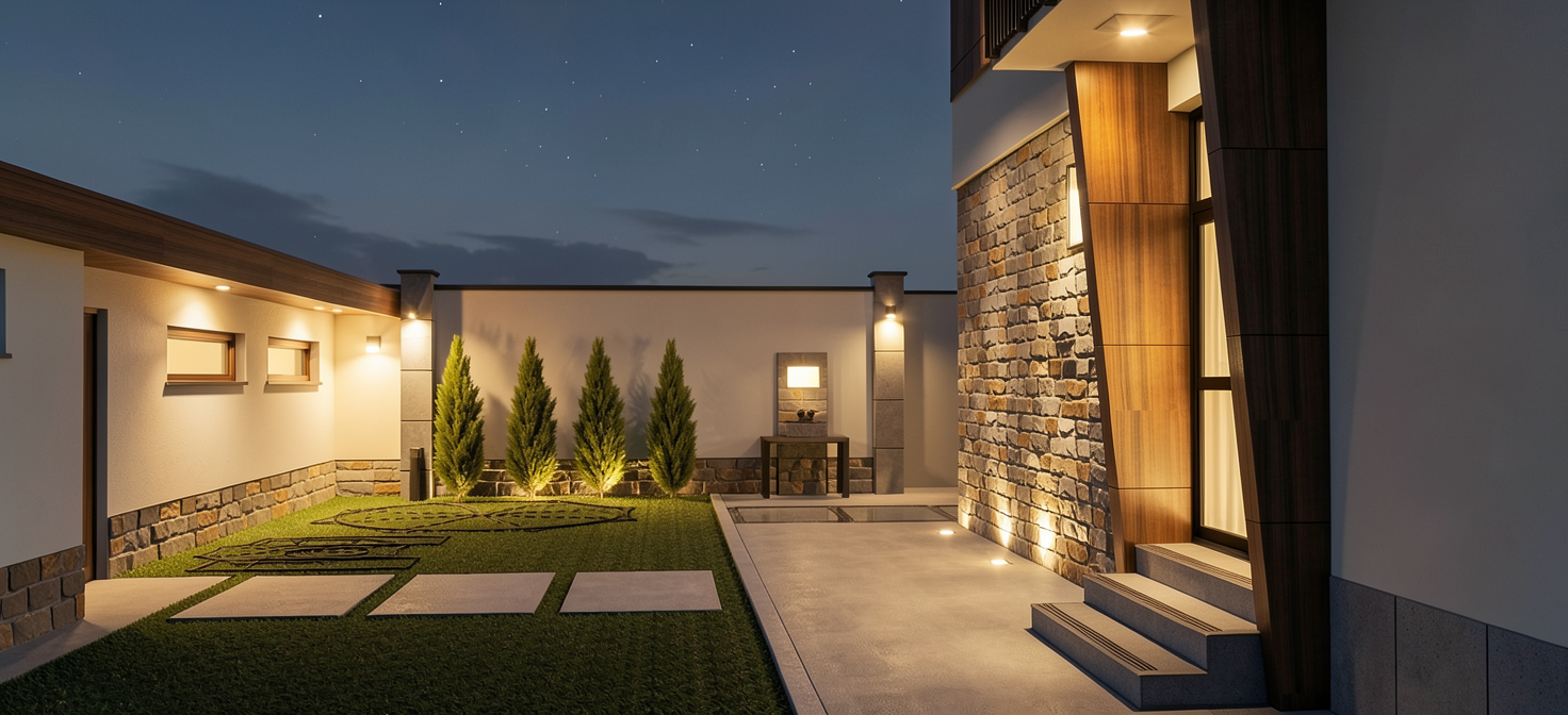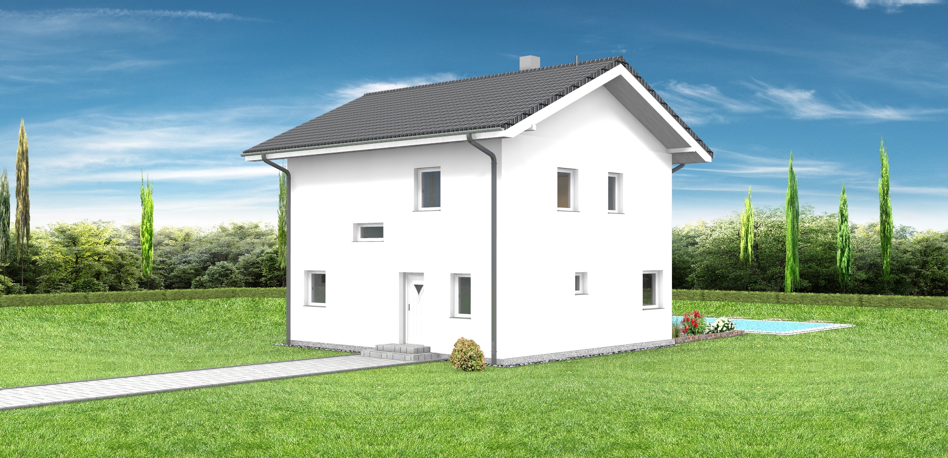 modernist exterior shot erstelle umliegenden garten und zufahrt architecture