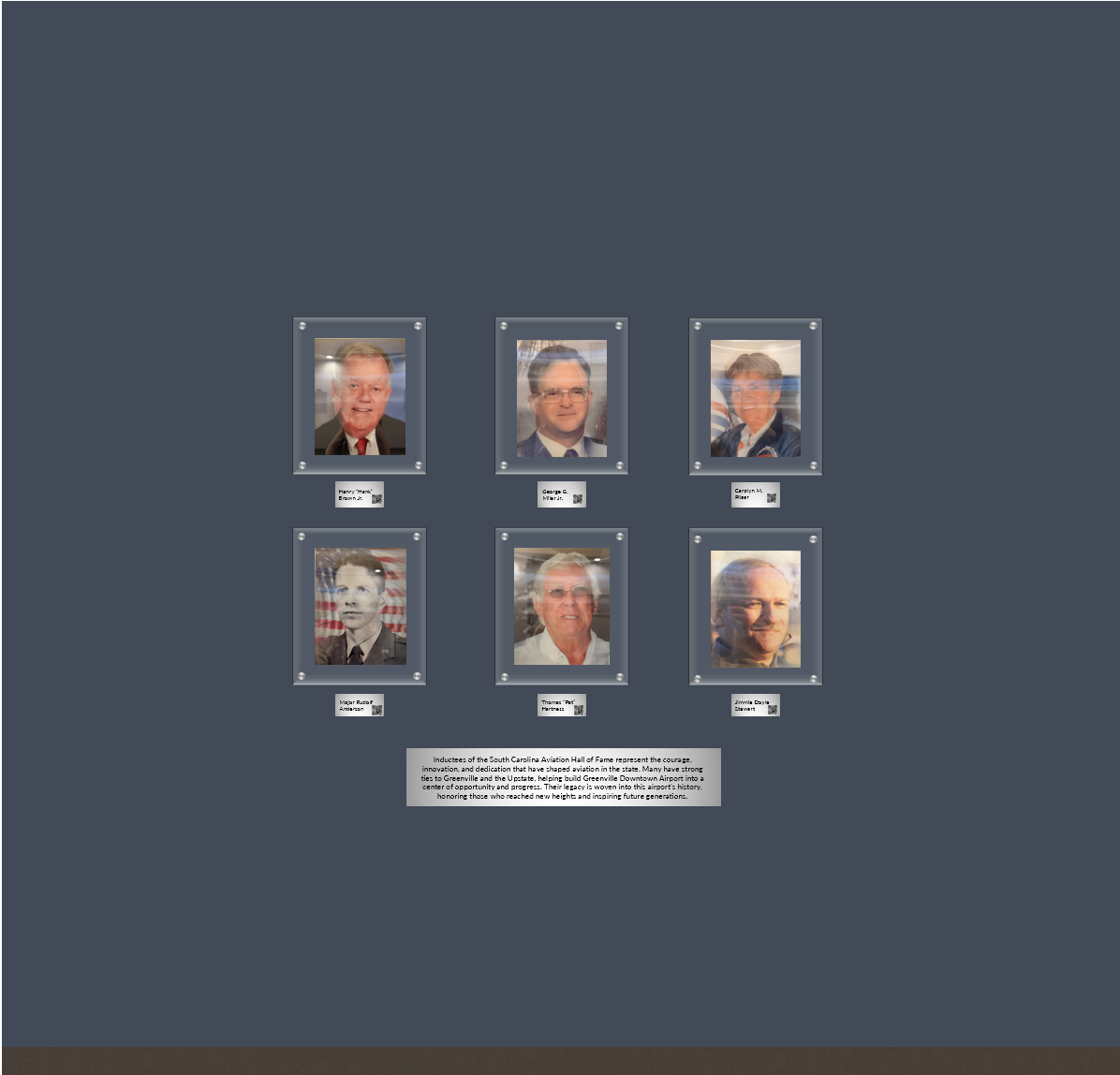 don t add framing clear acyrlic frames with silver standoffs dark navy wall no plants silver plaques underneath make text more readable at top lower floor lighten up image remove random plaque you added