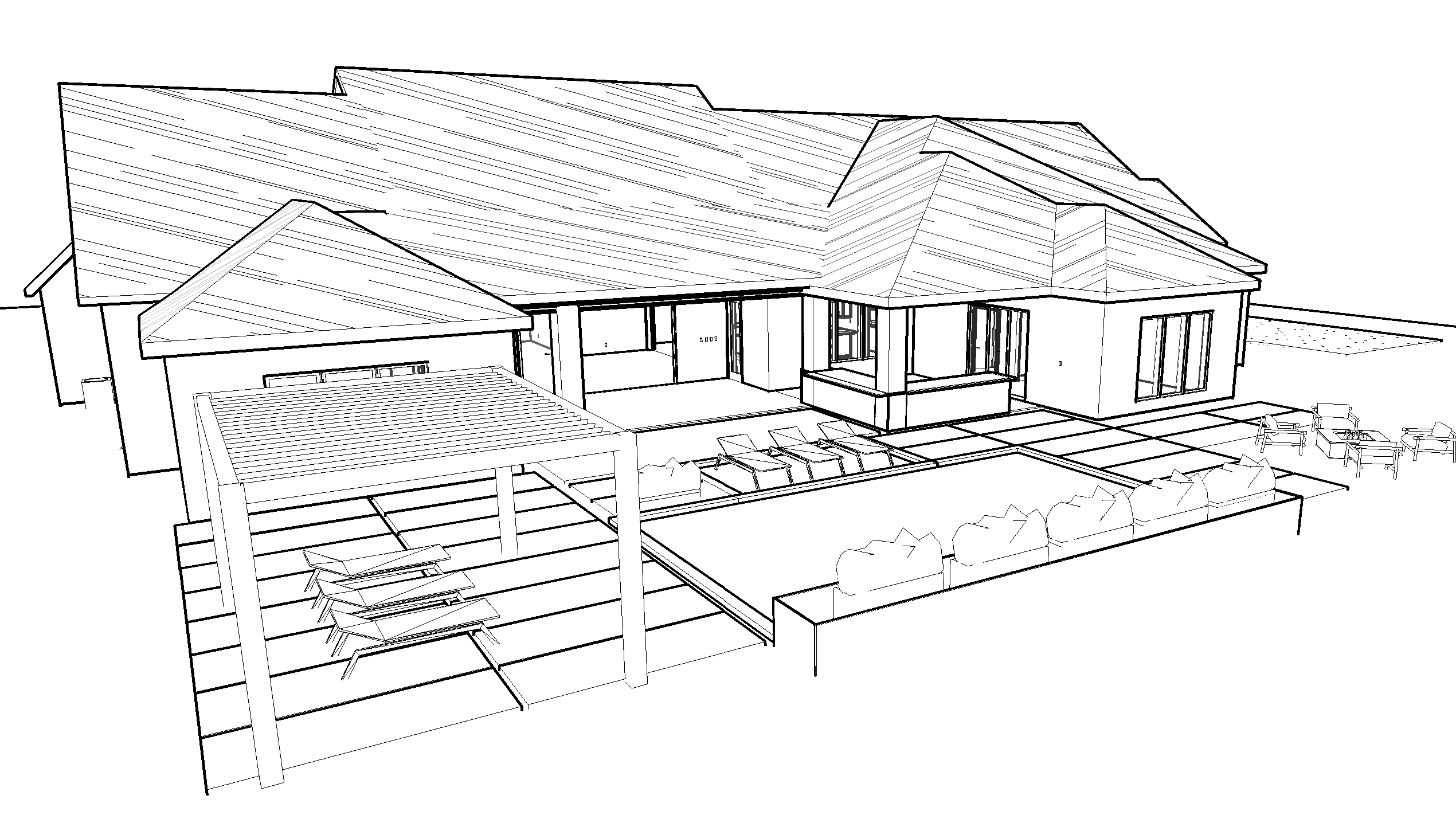 render a photorealistic 3d perspective of this house in a flower mound tx white brick black tile roof black windows keep model geometry the same windows doors roof walls garage door pavement driveway make a lush vegetation that looks native to north texas do not change the view only enhance the current materials and make the landscape nicer vegetation detailed textures in the wood siding and glass reflections and a over cast sky with light atmospheric depth render in hyper realistic architectural visualization quality 8k resolution