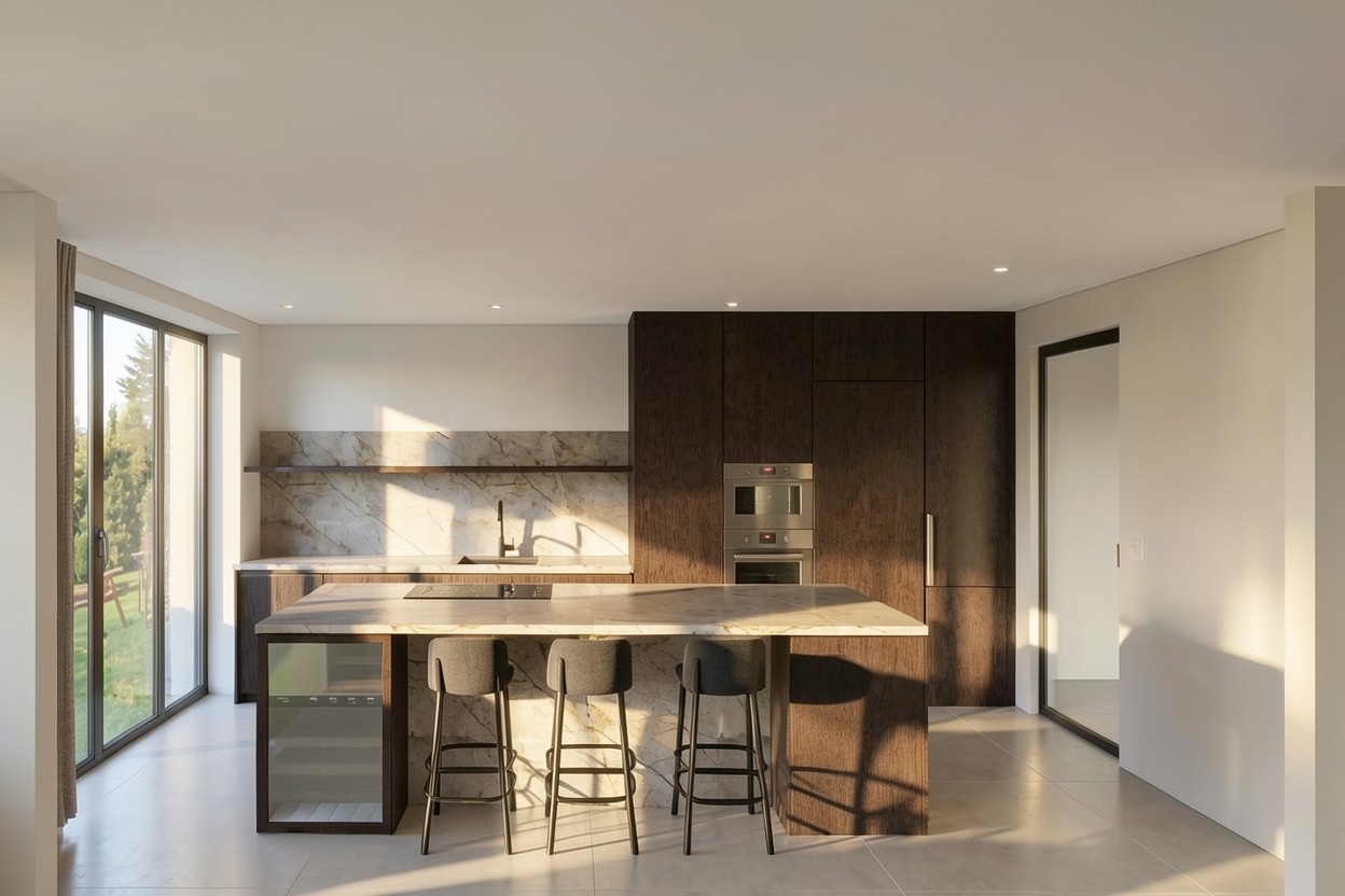 remove separated line on wall chairs are blue natural light come only from left keep wall texture like on imported picture