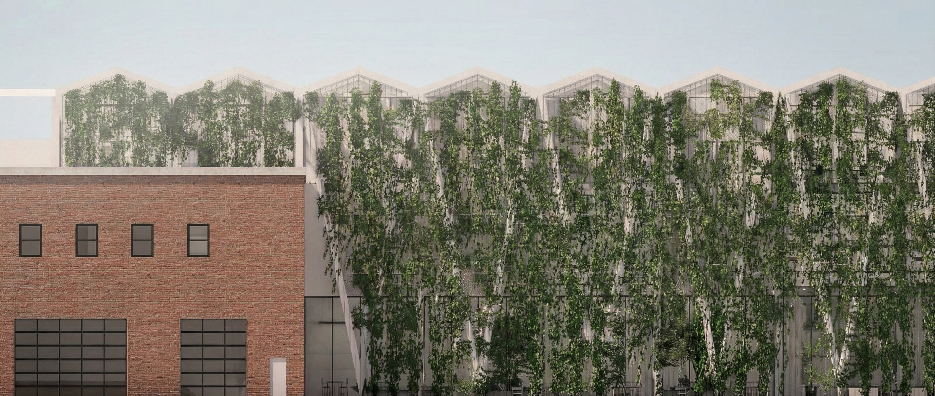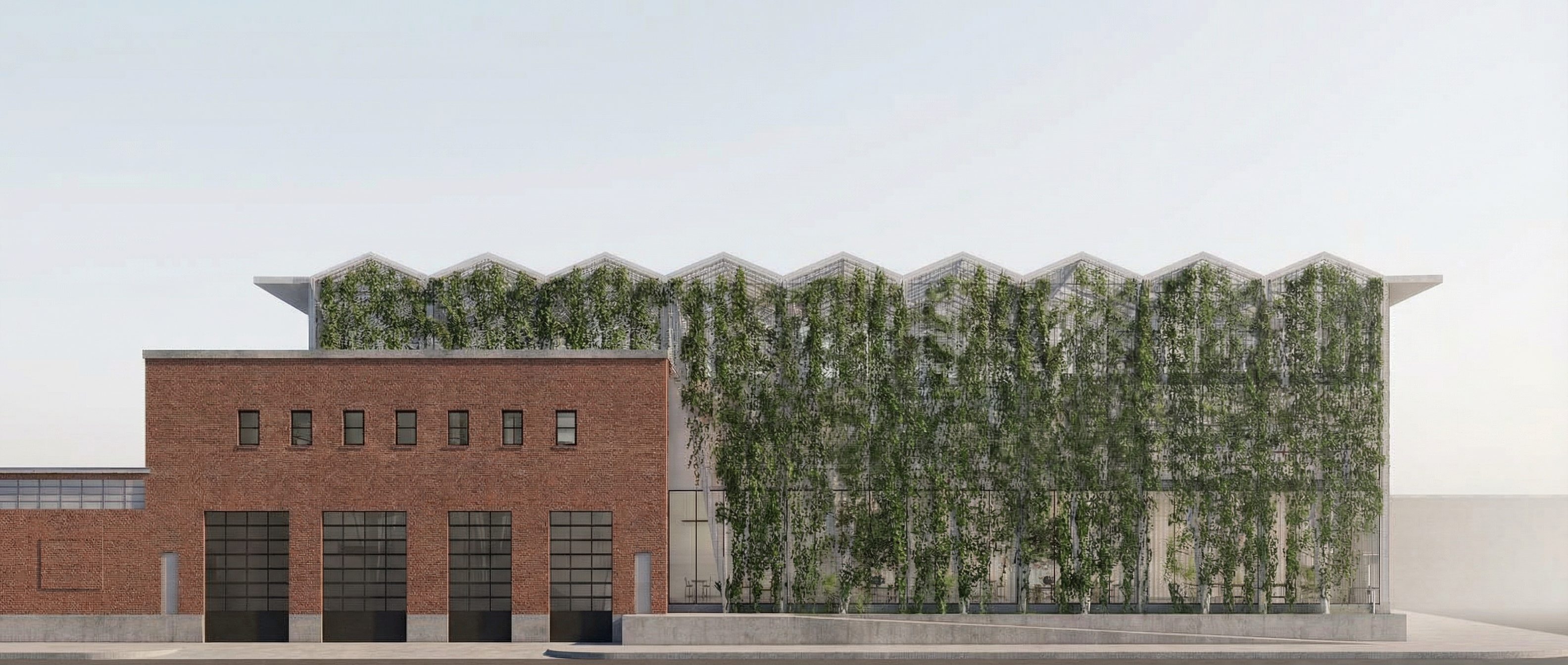 maintain the architecture framing vegetation and lighting as is only enhance interior illumination visible through glazing softly brighten interior ambient light add subtle warm toned interior glow behind windows increase perceived depth through transparency rather than changing glass size light gradients should be soft and architectural not theatrical faint reflection and light scatter to make interiors feel active and occupied add hints of interior volumes without adding furniture or people illumination should remain natural and diffuse not spotlighted do not alter exterior shadows perspective or material definition only interior brightness and atmospheric presence