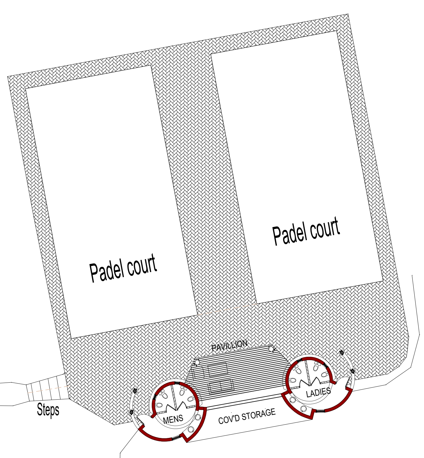 paddle courts situated in the bushveld with a timber pergola pavilion and high end ablutions
