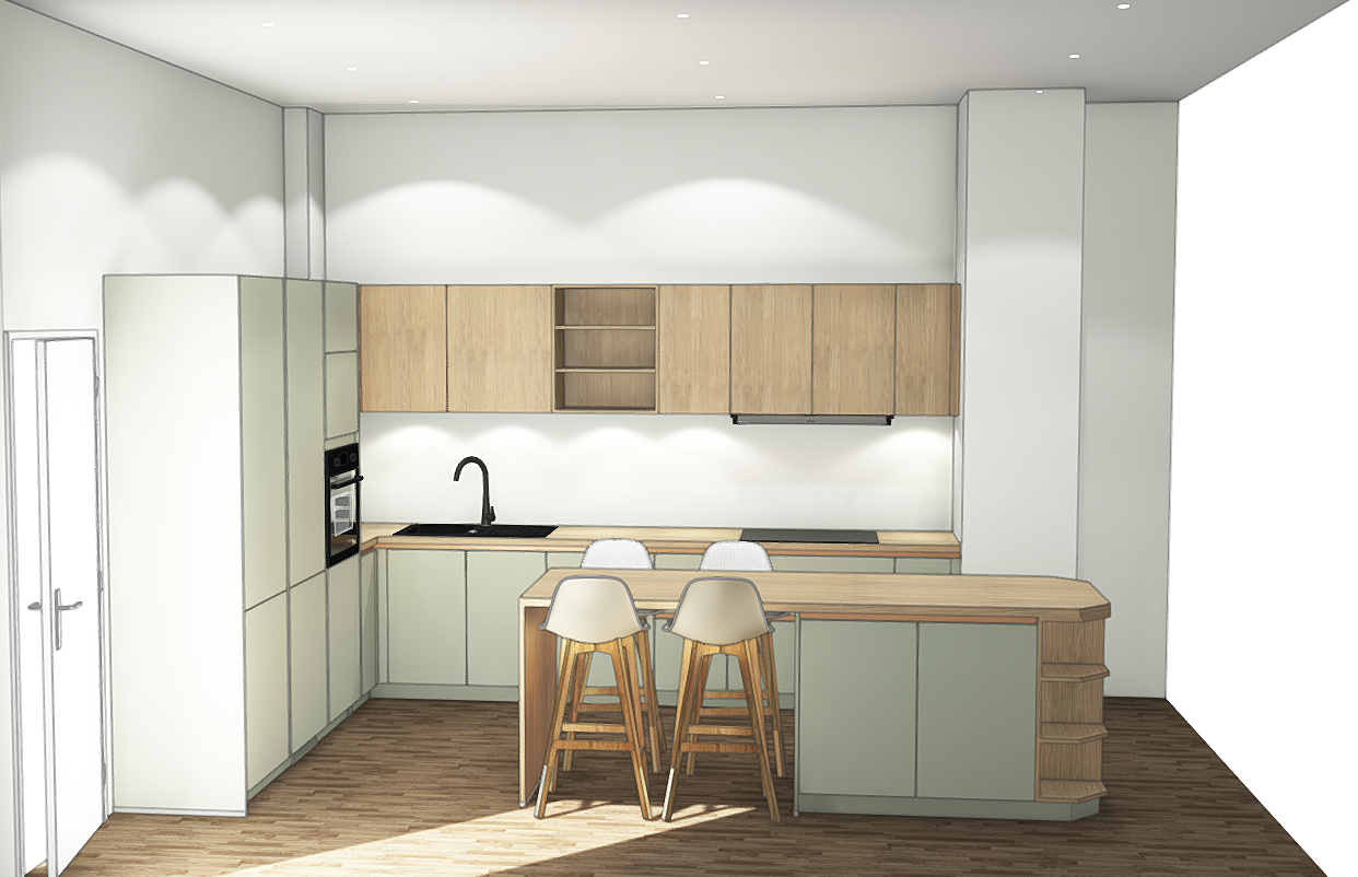 cr e un visuel ultra photor aliste effet wow client de cette perspective cuisine conserve les proportions des meubles ne modifie absolument pas l implantation ou les dimensions des meubles tu peux y ajouter une d coration mais conserve l originale garde une proportion paysage mais en respectant les dimensions initiales des meubles dans l image que je te fournis le rendu doit tre tr s r aliste et avec norm ment de d tails respecte par contre bien l implantation de la cuisine et ne rajoute rien