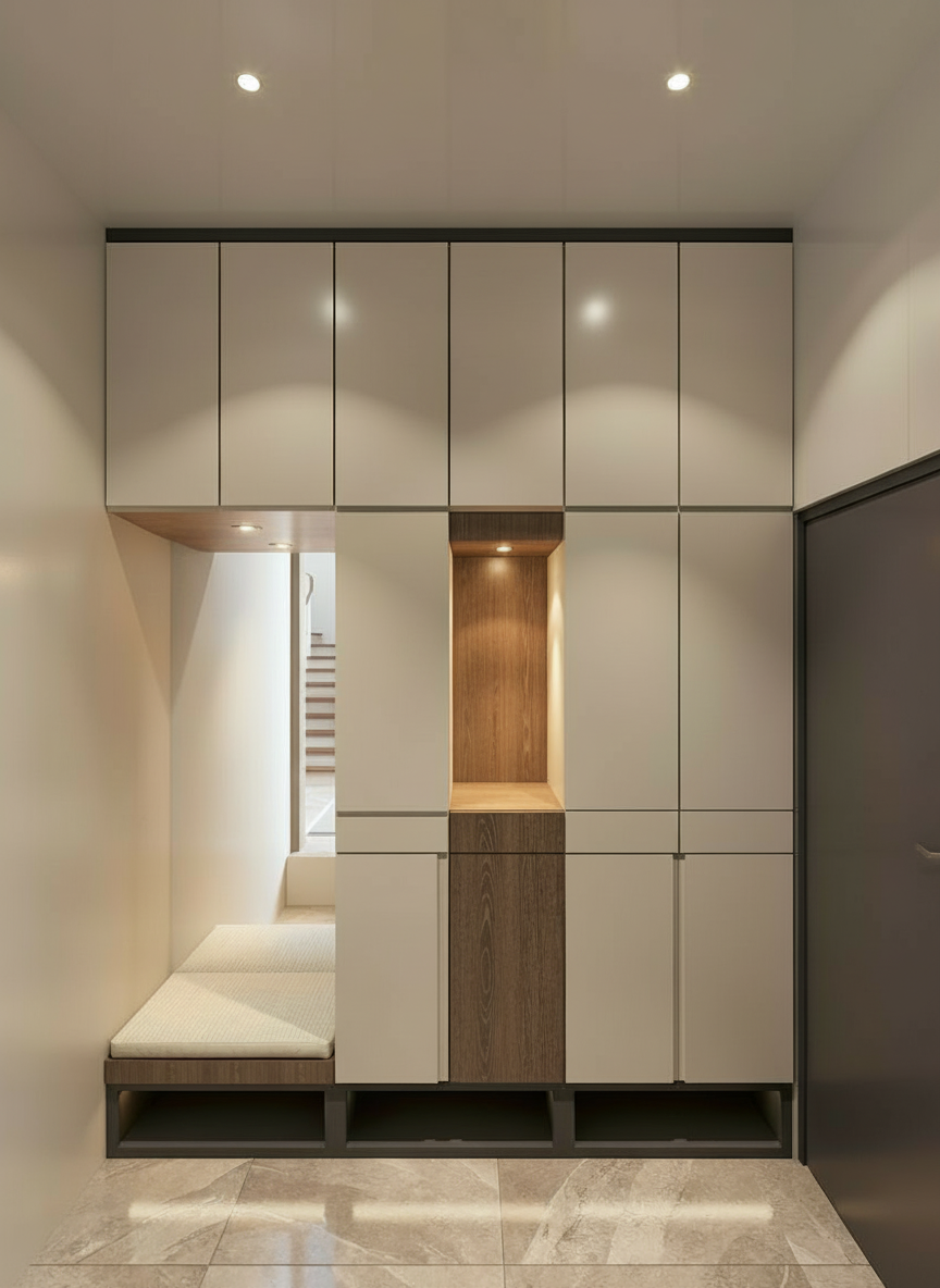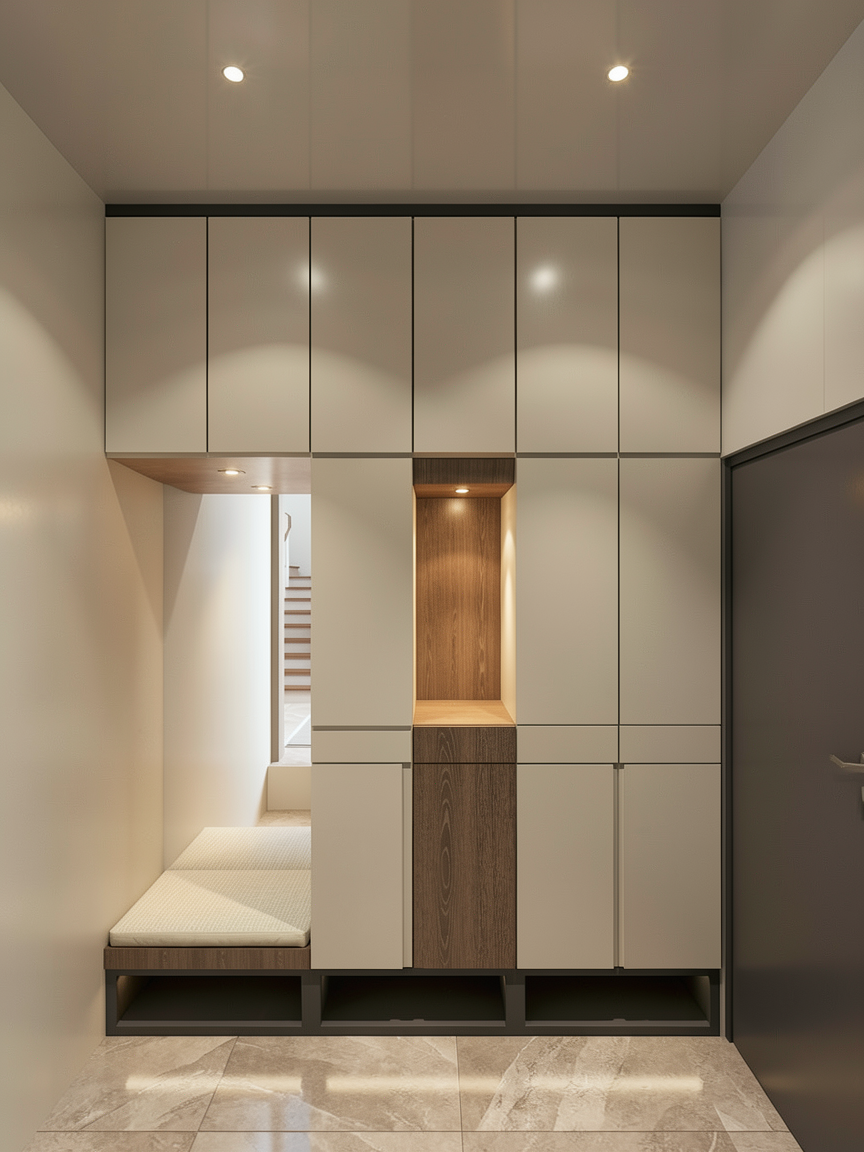 add shoes inside the open storage at the bottom