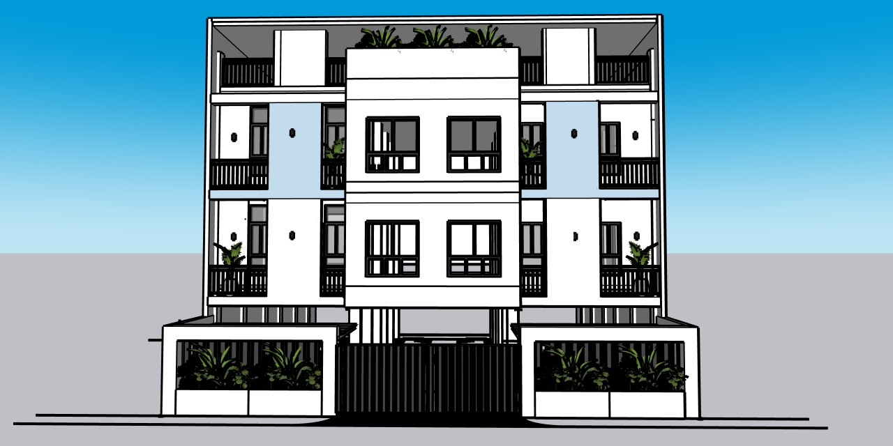 create a photorealistic architectural render based on the provided sketchup model exterior perspective with realistic materials accurate scale and correct proportions all 8 wall mounted lamps on the front fa ade are turned on emitting a warm realistic glow that highlights the building s textures and architectural details people are present in front of the building walking and standing naturally to show human scale and activity cars are passing along the street in the foreground with realistic motion blur headlights and reflections trees and surrounding greenery are integrated into the scene realistically sized and placed contributing to depth and environmental context high quality lighting global illumination soft shadows realistic reflections cinematic composition professional architectural visualization ultra realistic 4k quality