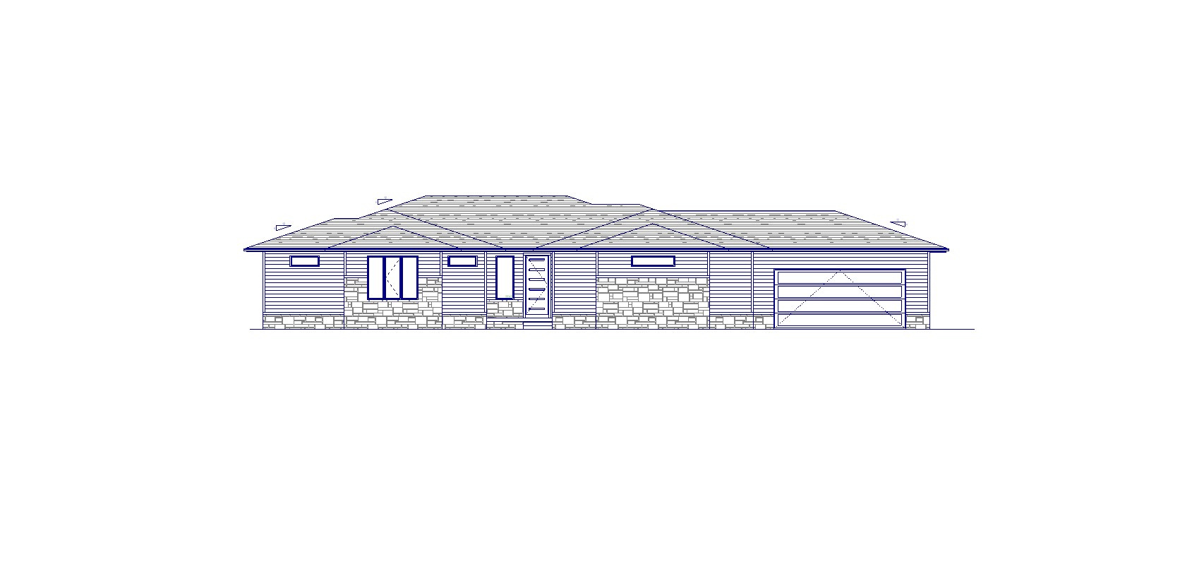 frank lloyd wright inspired design with warm grey green earthy siding with limestone stonework black garage doors and windows with charcoal asphalt shingles acreage site with prairie grasses and trees in the distance warm soft shadowing in summer time