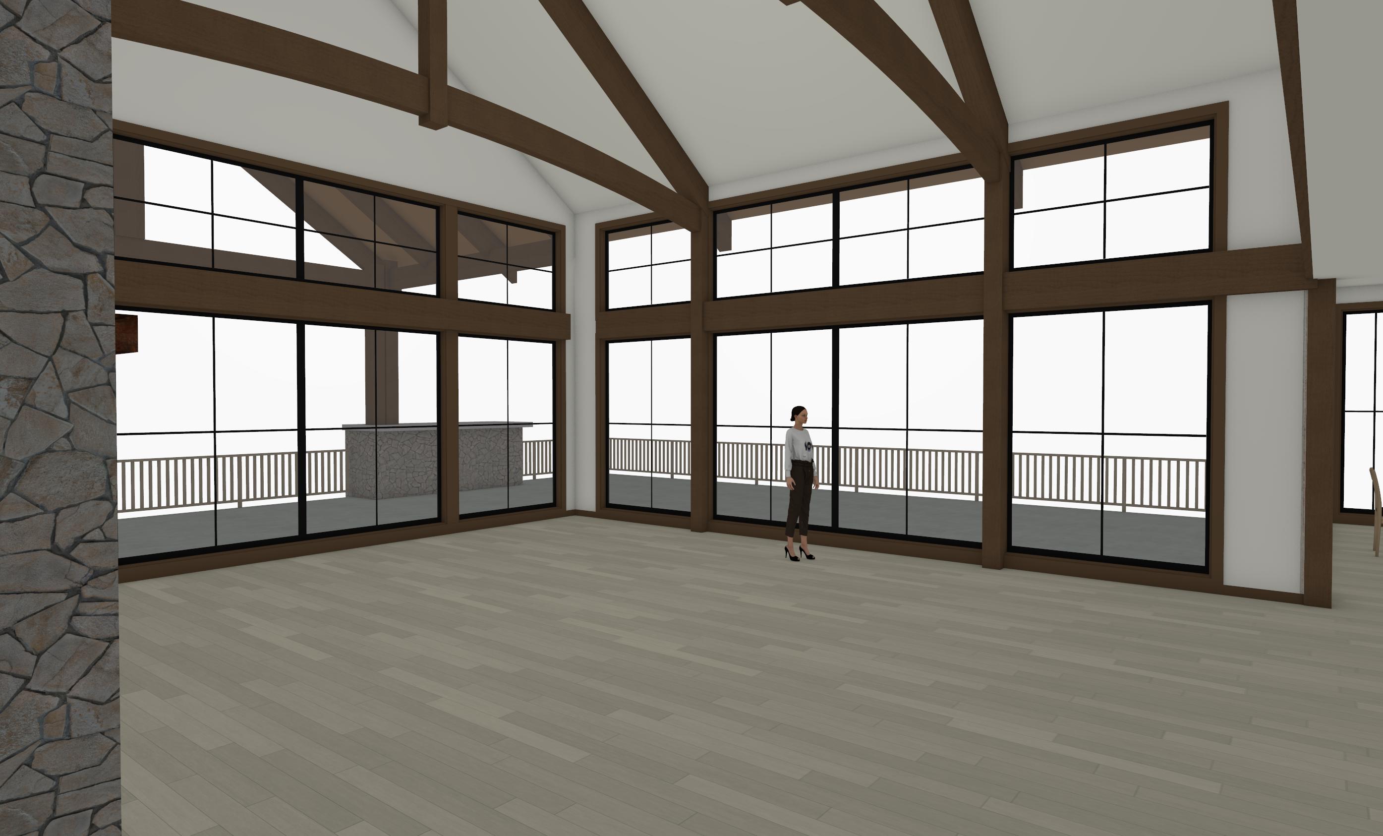 make interior look like a jackson hole interior rustic but modern add chairs at island make walls and ceiling plaster it s important to keep the sizes of everything the same change textures and materials but keep the sizes of everything the same make 5 chairs make rock realistic this is the living room add couches chairs and coffee table this is living room don t add kitchen island or kitchen island chairs its important to keep to scale this room is big the person in background is 5 6 for scale