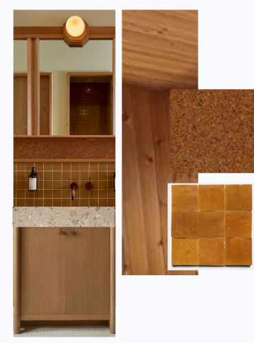 wood paneling ceilings and walls cork behind mirror single vanity simple toilet tiled shower