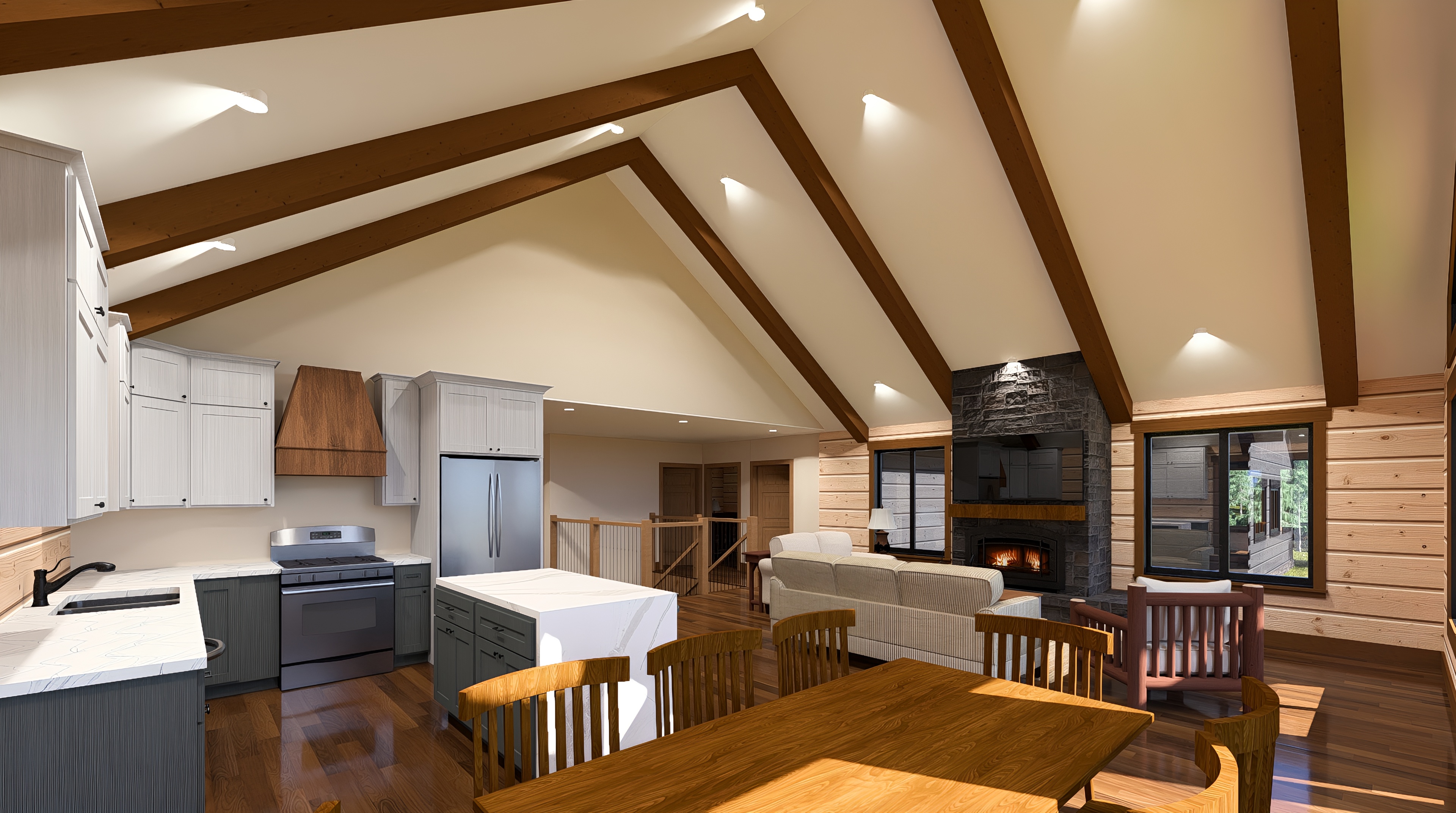 make this interior look realistic add some items in the kitchen and on dining table
