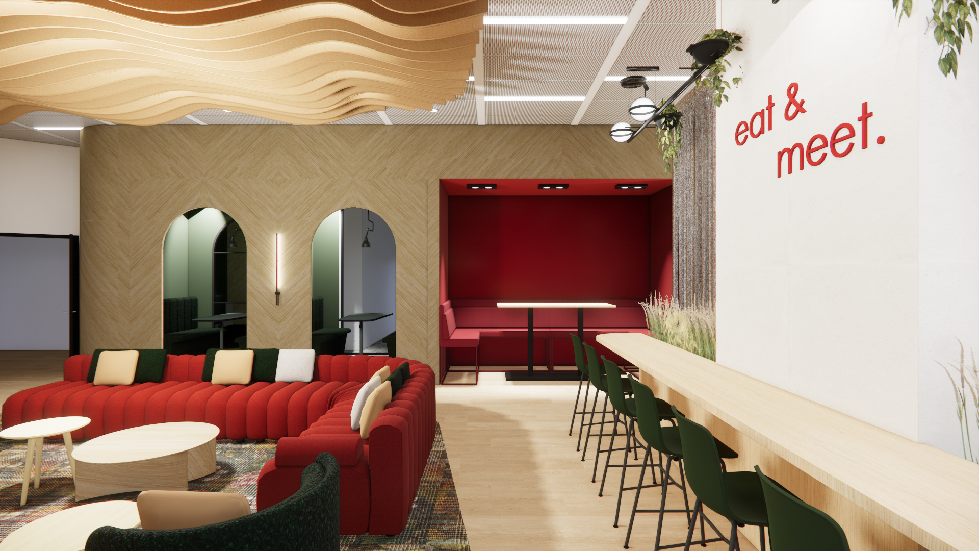can you create realistic c natural atmosphere keep all the coor and add 2people working and having a coffe together dont add any other furniture on the picture