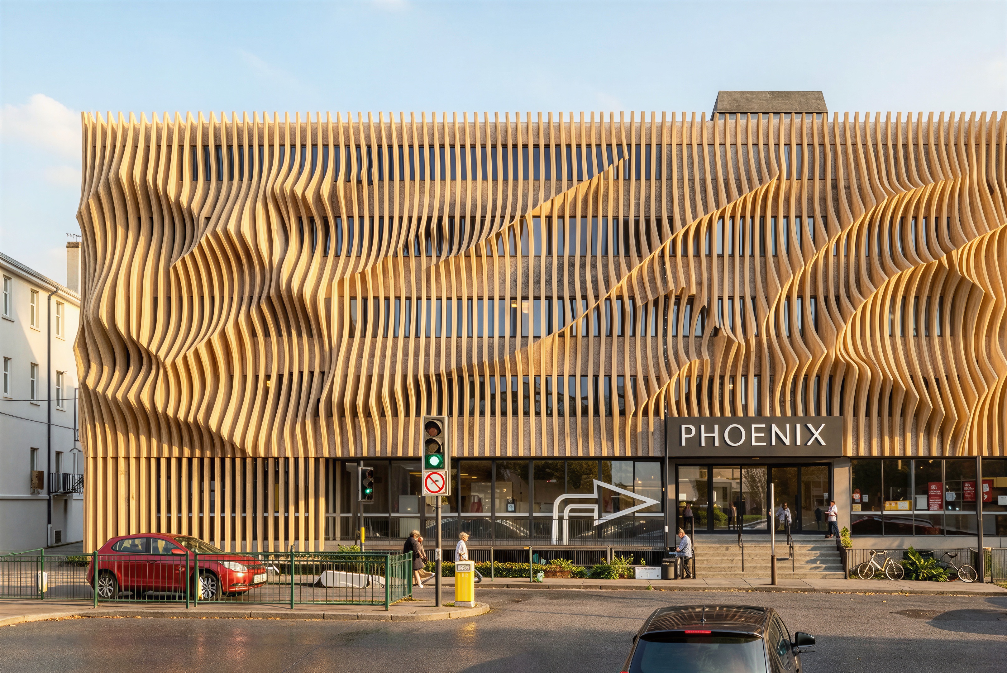 can you cutout some patches of the vertical fins to expose the windows and walls of the existing building behind in a sculptural manner
