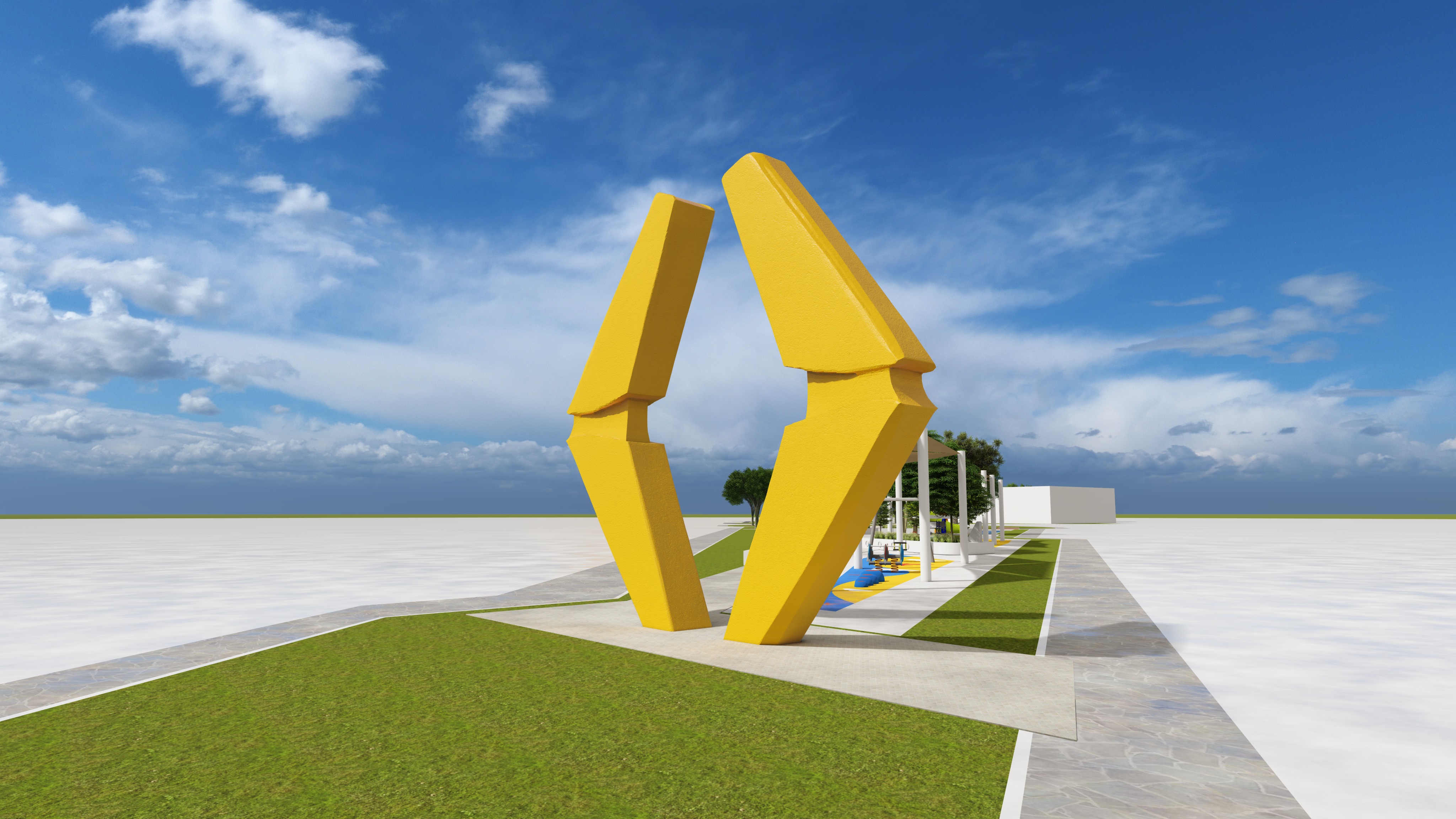 ultra realistic architectural playground render strictly preserve the exact playground equipment design do not modify shapes do not redesign structures do not alter layout maintain original proportions and materials enhance lighting realism and playing only integrate realistic urban park context in the background natural trees subtle distant buildings believable sky physically accurate daylight with consistent shadow direction environmental bounce light and natural shadow gradients naturally interacting with the equipment in realistic ways every playground element being actively used authentic body mechanics and weight distribution varied dynamic with background slightly softened professional architectural photography style balanced daylight high detail 8k clarity