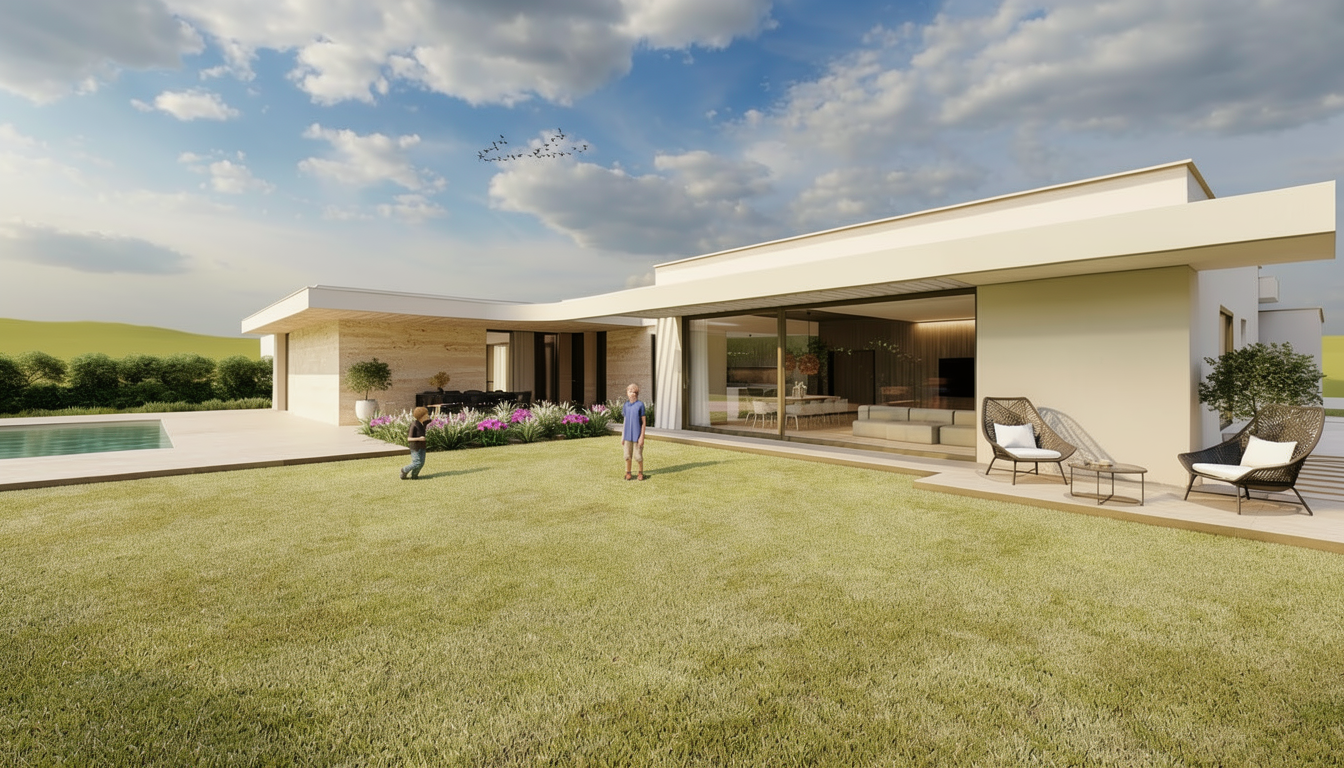 keep all textures and colors as original picture keep rug as original shape add a backyard outside the window