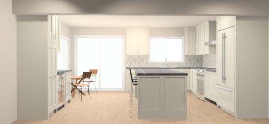 stage this kitchen with a neutral mid century modern backsplash and accessories