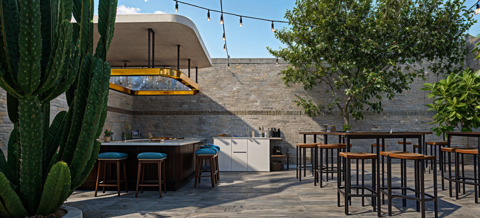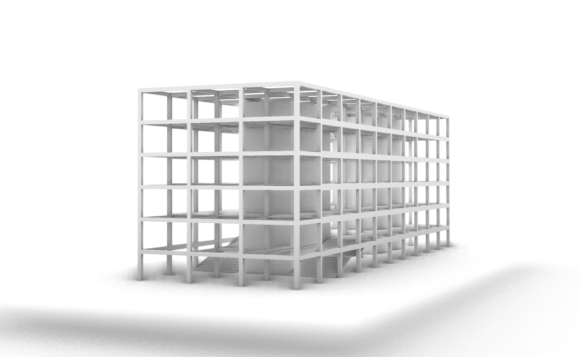 wide angle shot a modern architectural structure featuring a geometric grid design set in a serene environment the building s framework is painted in sleek metallic silver reflecting a vibrant blue sky soft sunlight casts gentle shadows creating depth and contrast the atmosphere is calm and futuristic with a crisp clear horizon in the background