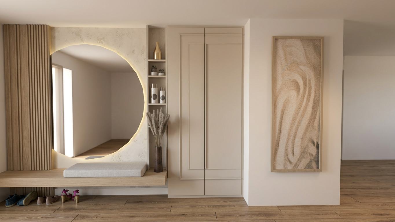 recessed lights in the ceiling add items to the mudroom bench add items to mudroom bench add shoes to shelves hang coat on hooks black door handle