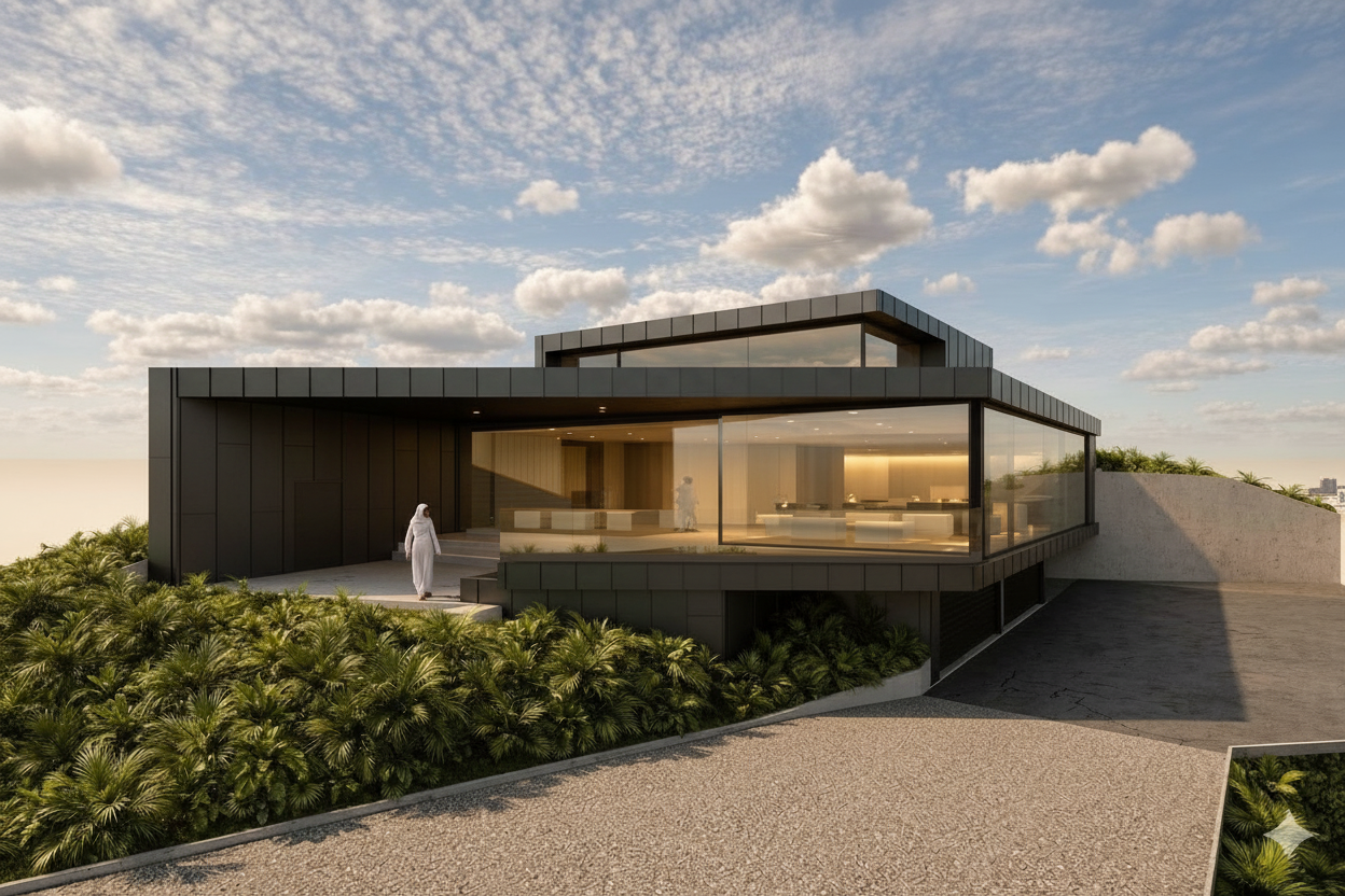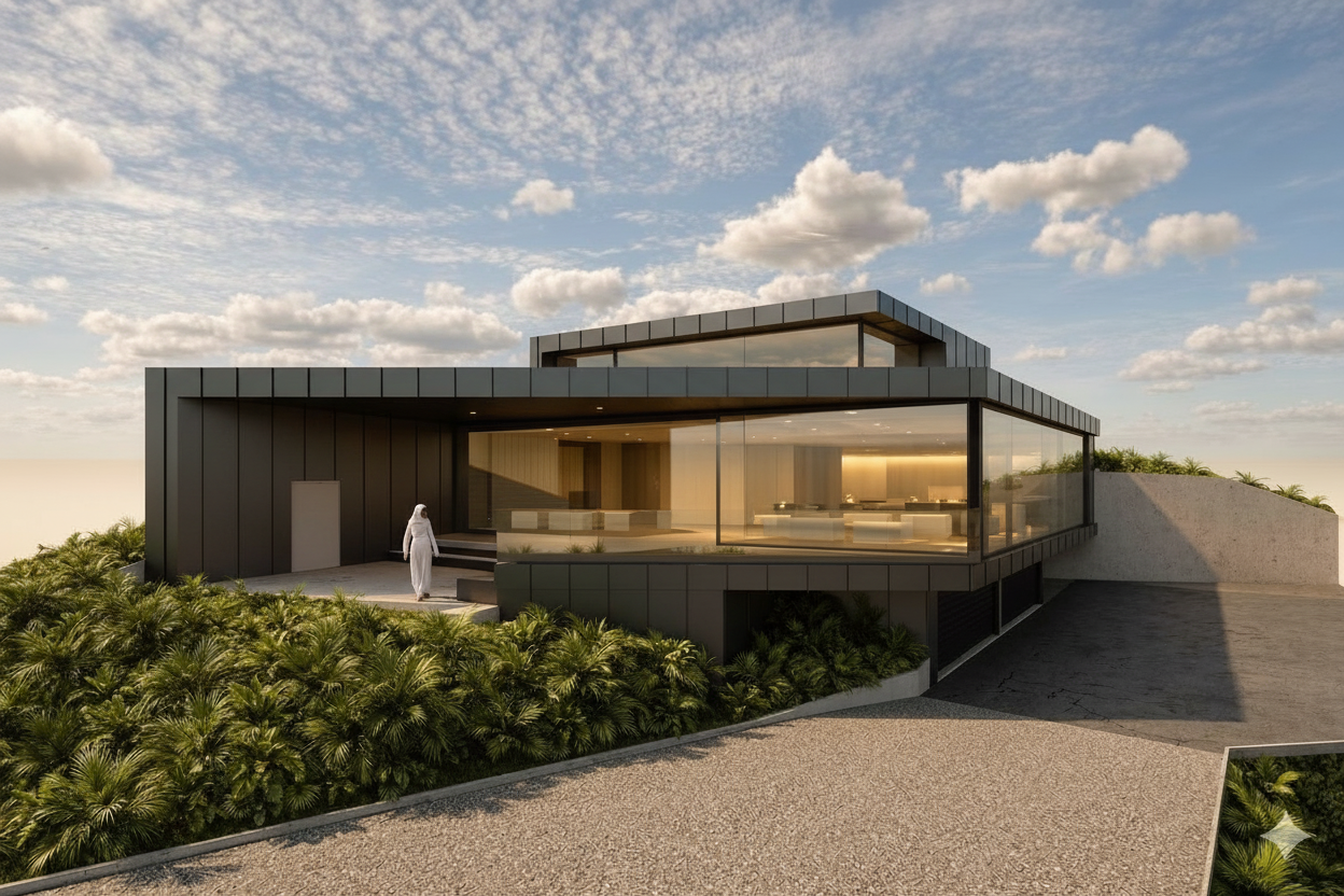 modern exterior shot using the attached image provide alternitave cladding options architecture