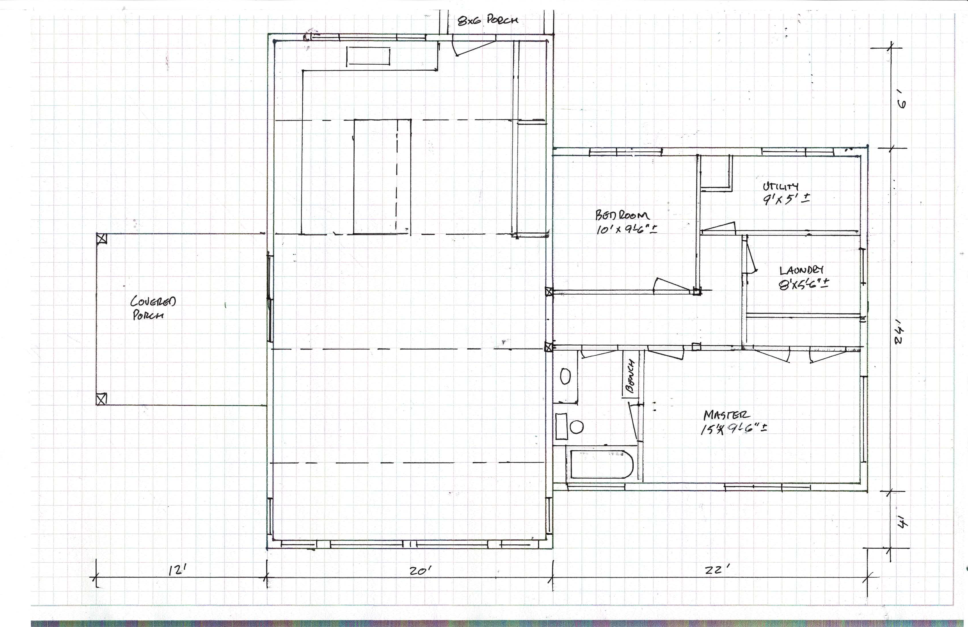 create a 2d black and white cad style line drawing of this floor plan sketch don t change the layout or windows