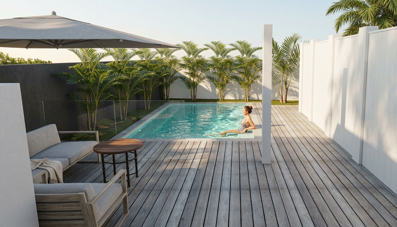 add lady in pool change right wall to a house wall with wide opening doors