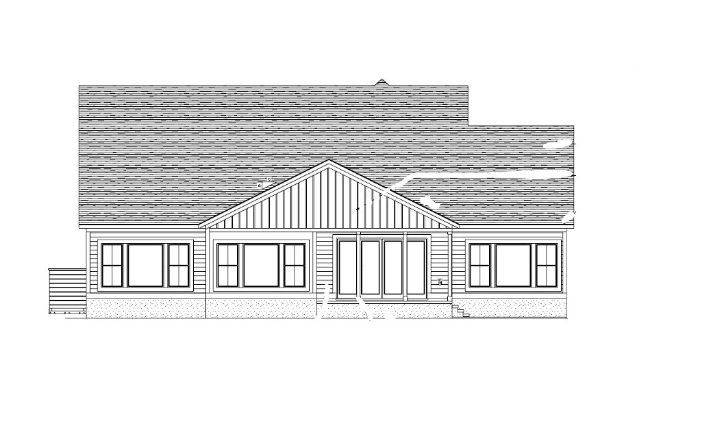 make as photorealistic as possible while keeping textures the same as shown grassy backyard in a lightly wooded suburb of bluffton sc nice lighting remove any text use the following finishes e7e7e5 board and batten siding e7e7e5 trim white stucco foundation black certainteed dimensional shingles