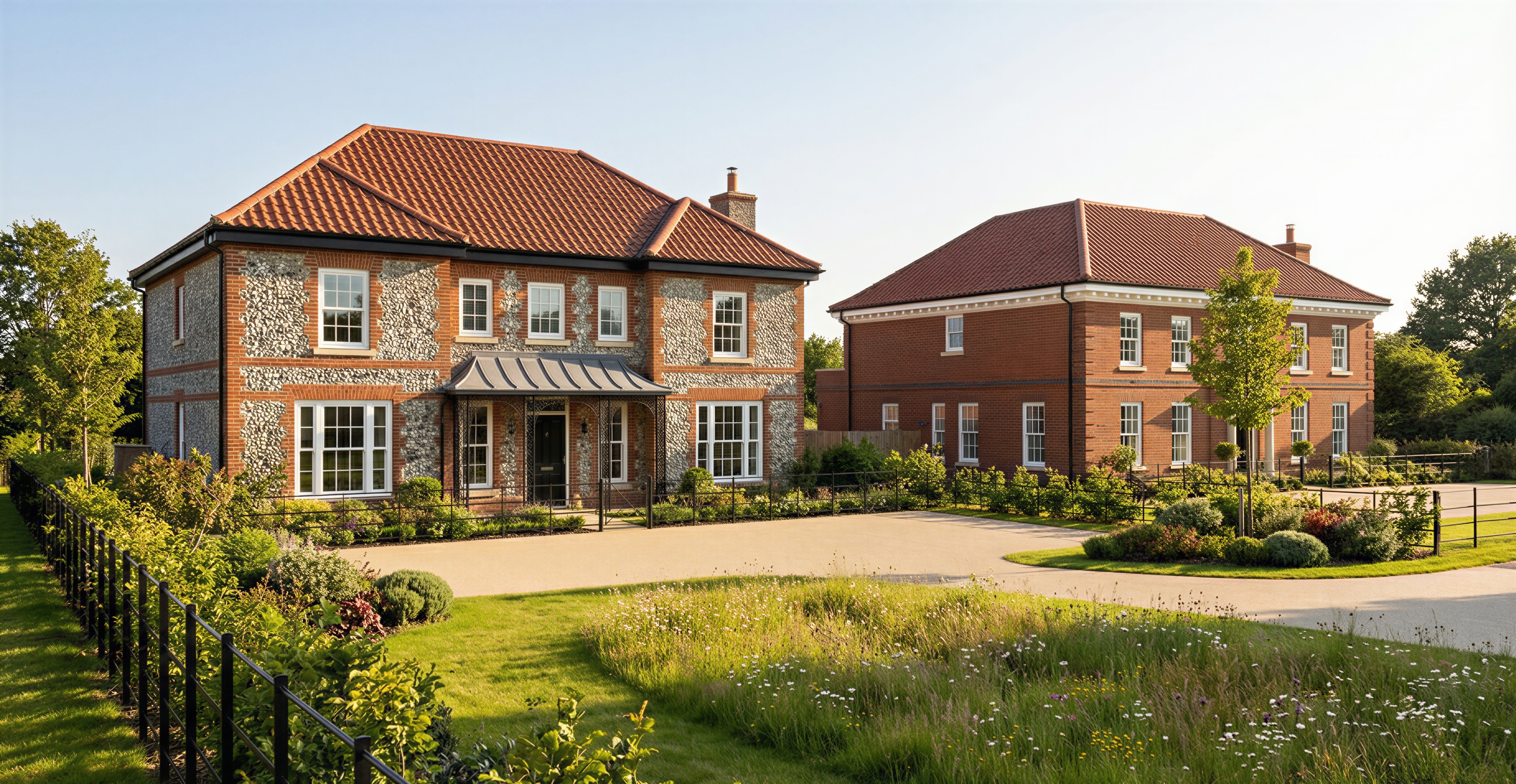 make the roof tiles more flat clay red tiles add more manicured classy planting with lavender make the planting between the buildings more mounded add a tesla to the front drive add a few more small tees and topiary bushes