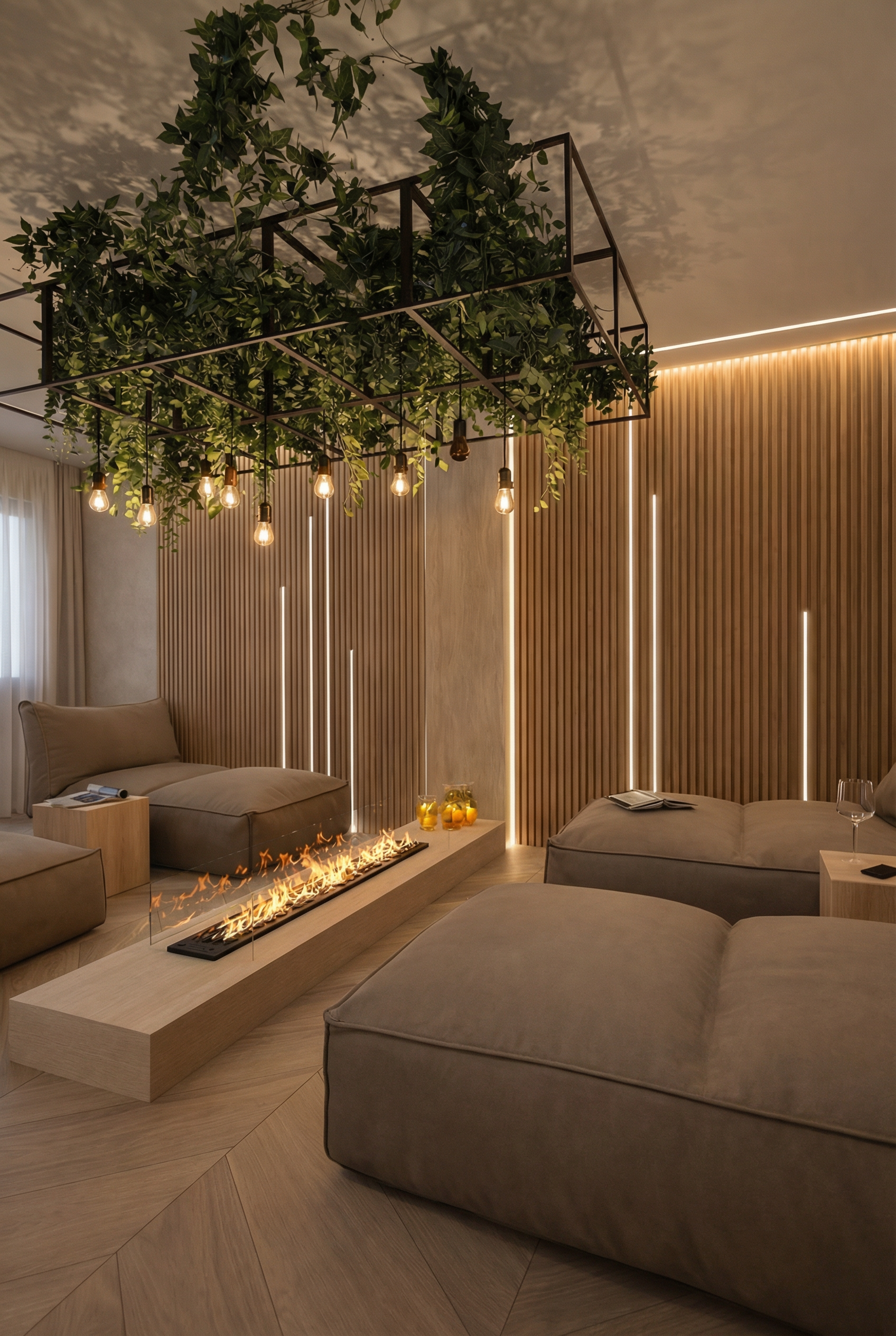 add decor make more realistic and add professional people do not change any of the furniture or materials add recessed lighting